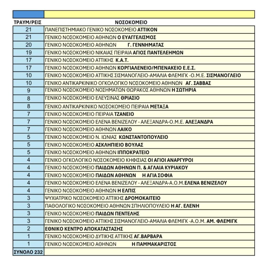 Η λίστα με τα 14 νοσοκομεία