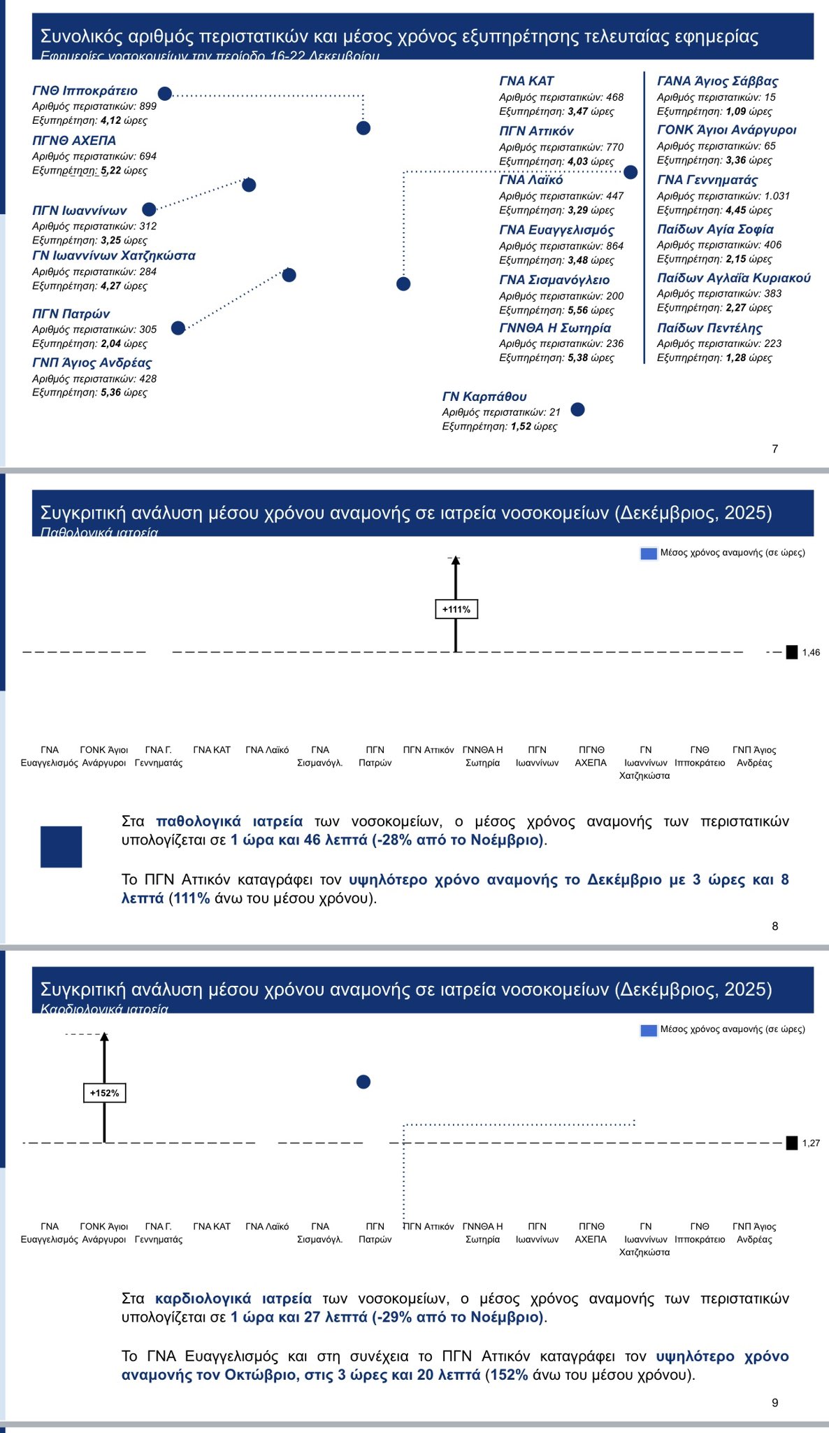 Αύξηση +7% του χρόνου εξυπηρέτησης των ασθενών την περίοδο Νοεμβρίου – Δεκεμβρίου 2025, αλλά με παράλληλη αύξηση της κίνησης στα ΤΕΠ λόγω αύξησης κυρίως των αναπνευστικών νοσημάτων.