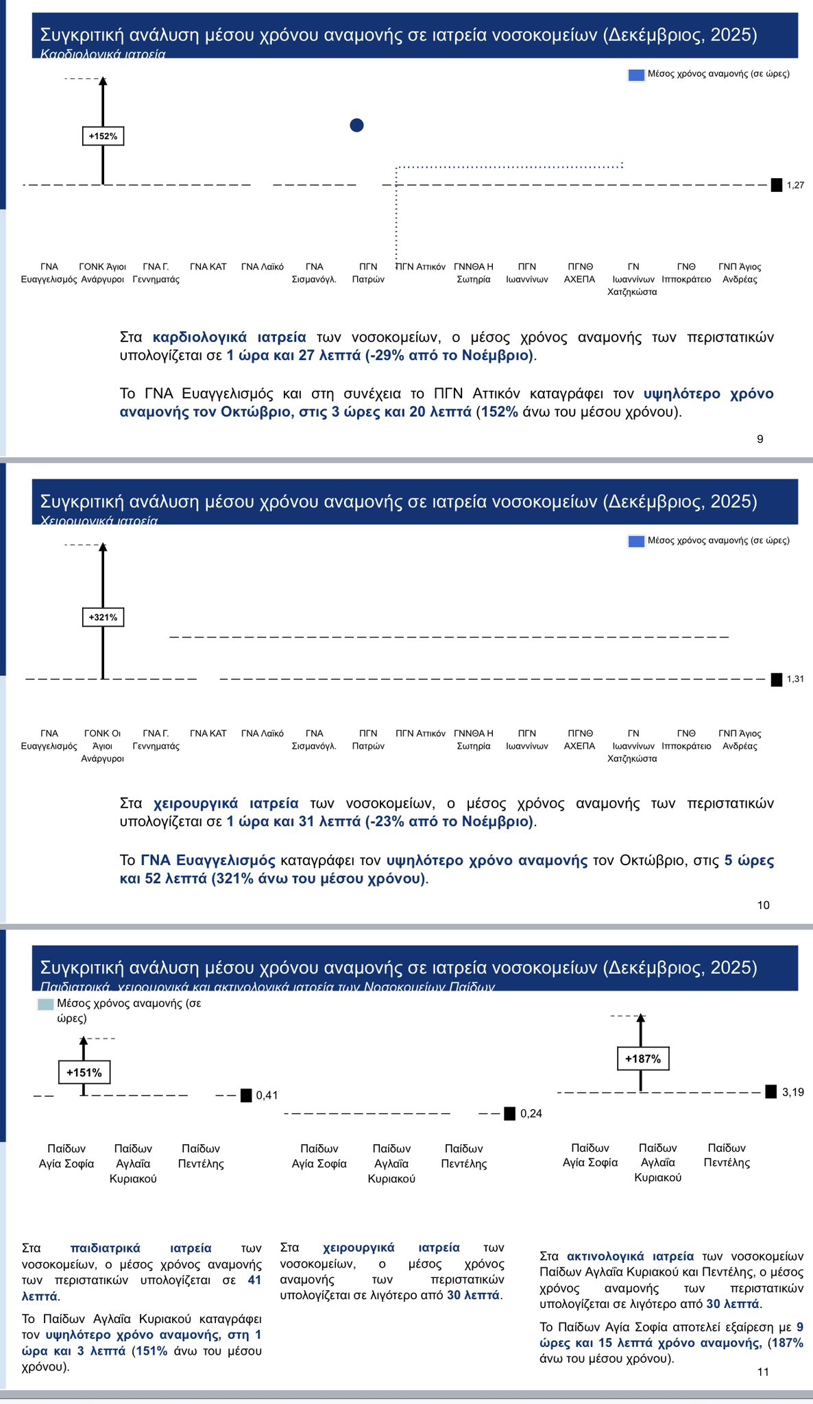 «Αποδεικνύεται σημαντική μείωση -65% στο μέσο χρόνο εξυπηρέτησης ασθενών την περίοδο Φεβρουαρίου – Νοεμβρίου 2025 σε συνέχεια των πρωτοβουλιών και προγραμμάτων που έχουν υλοποιηθεί», αναφέρει αρχικά ο κ. Γεωργιάδης και προσθέτει:
