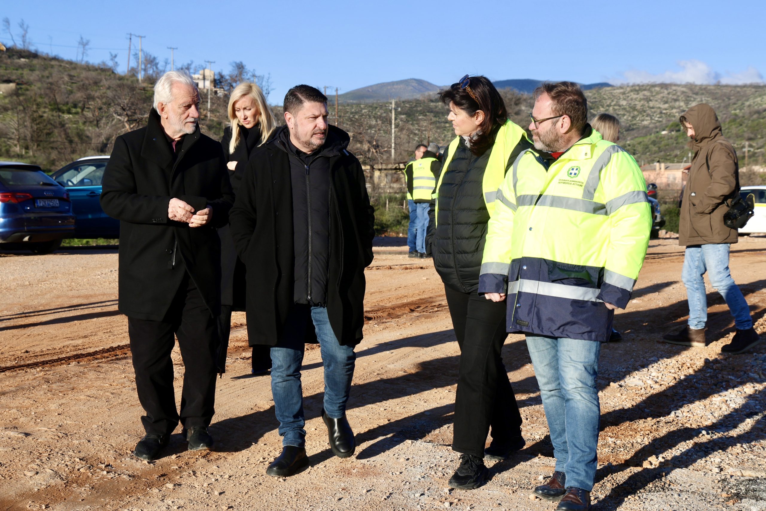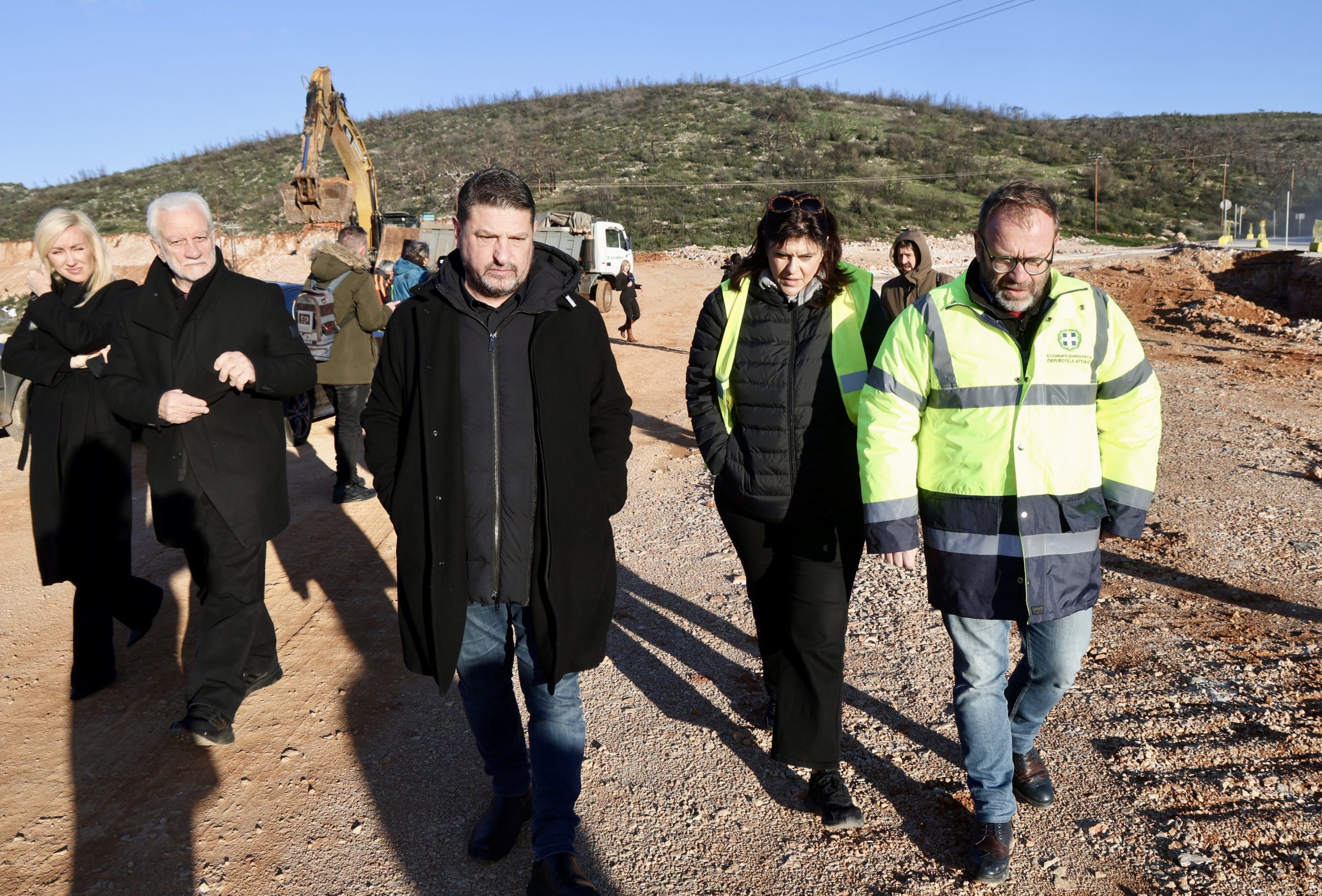 Στην αυτοψία του στο έργο της νέας χάραξης και βελτίωσης της Π.Ε.Ο. Αθηνών – Θηβών, τον κ. Χαρδαλιά συνόδευσαν η Ειδική Γραμματέας της Περιφέρειας Έλενα Ράπτη, ο Γενικός Διευθυντής Αναπτυξιακού Προγραμματισμού, Έργων και Υποδομών Μιλτιάδης Κύρκος, η Διευθύντρια Τεχνικών Έργων Χαρίκλεια Μπιτζιλέκη, μελετητές και εκπρόσωποι του αναδόχου.
