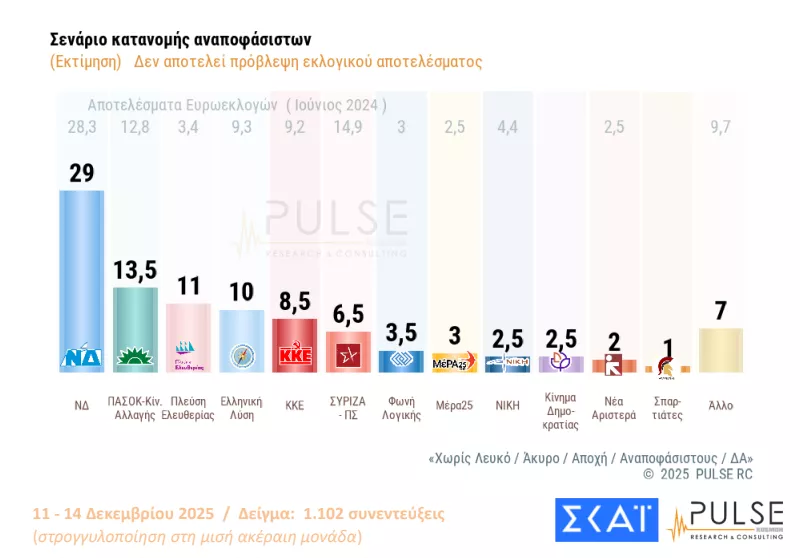 Αναλυτικά τα αποτελέσματα της δημοσκόπησης της Pulse για τον ΣΚΑΪ: