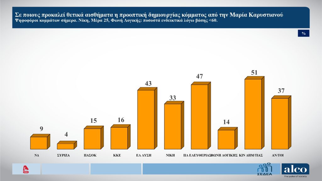 Σύμφωνα με τη δημοσκόπηση της Alco, τέθηκε ερώτημα για το αν χρειάζεται πρόγραμμα το ενδεχόμενο κόμμα της Μαρίας Καρυστιανού.