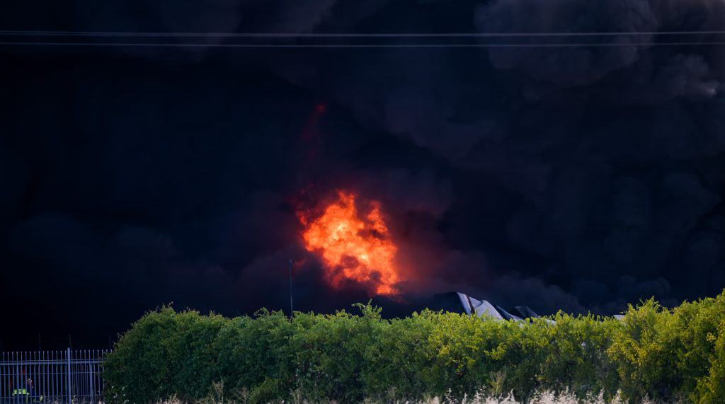 Μέχρι στιγμής η φωτιά δεν απειλεί παρακείμενες εγκαταστάσεις, ωστόσο η ατμόσφαιρα είναι αποπνικτική λόγω των τοξικών καπνών. Παράλληλα, η πυρκαγιά θα χρειαστεί ώρες να περιοριστεί λόγω της μεγάλης έκτασης.