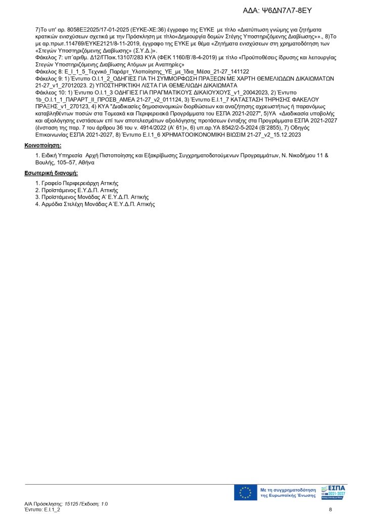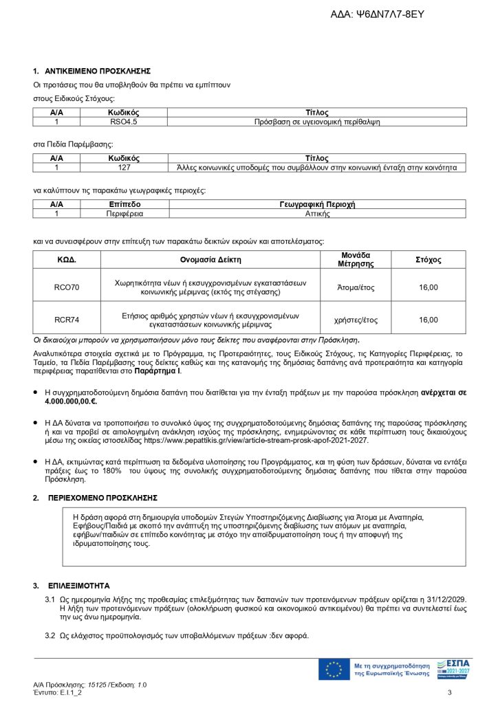 Υπενθυμίζεται ότι ήδη μέσω του Περιφερειακού Προγράμματος «Αττική 2021-2027» και ειδικότερα του Ευρωπαϊκού Κοινωνικού Ταμείου (ΕΚΤ), χρηματοδοτείται από την Περιφέρεια Αττικής η λειτουργία 12 Στεγών Υποστηριζόμενης Διαβίωσης, με συνολικό προϋπολογισμό 5 εκατ. ευρώ.