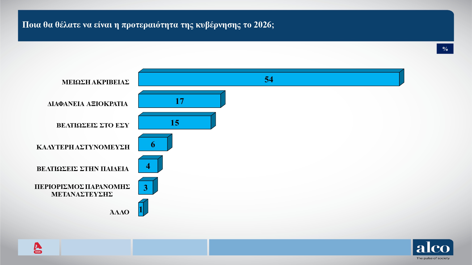 Η τελευταία δημοσκόπηση της ALCO για το τέλος του 2025 δείχνει ένα πολιτικό σκηνικό με μικρές αλλά ενδεικτικές μεταβολές, ενώ οι αναποφάσιστοι παραμένουν σε υψηλά επίπεδα, πάνω από το 20%.