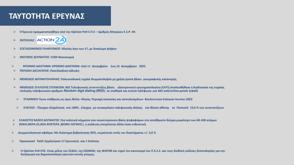Αναλυτικά η δημοσκόπηση της Opinion Poll για το Action24: