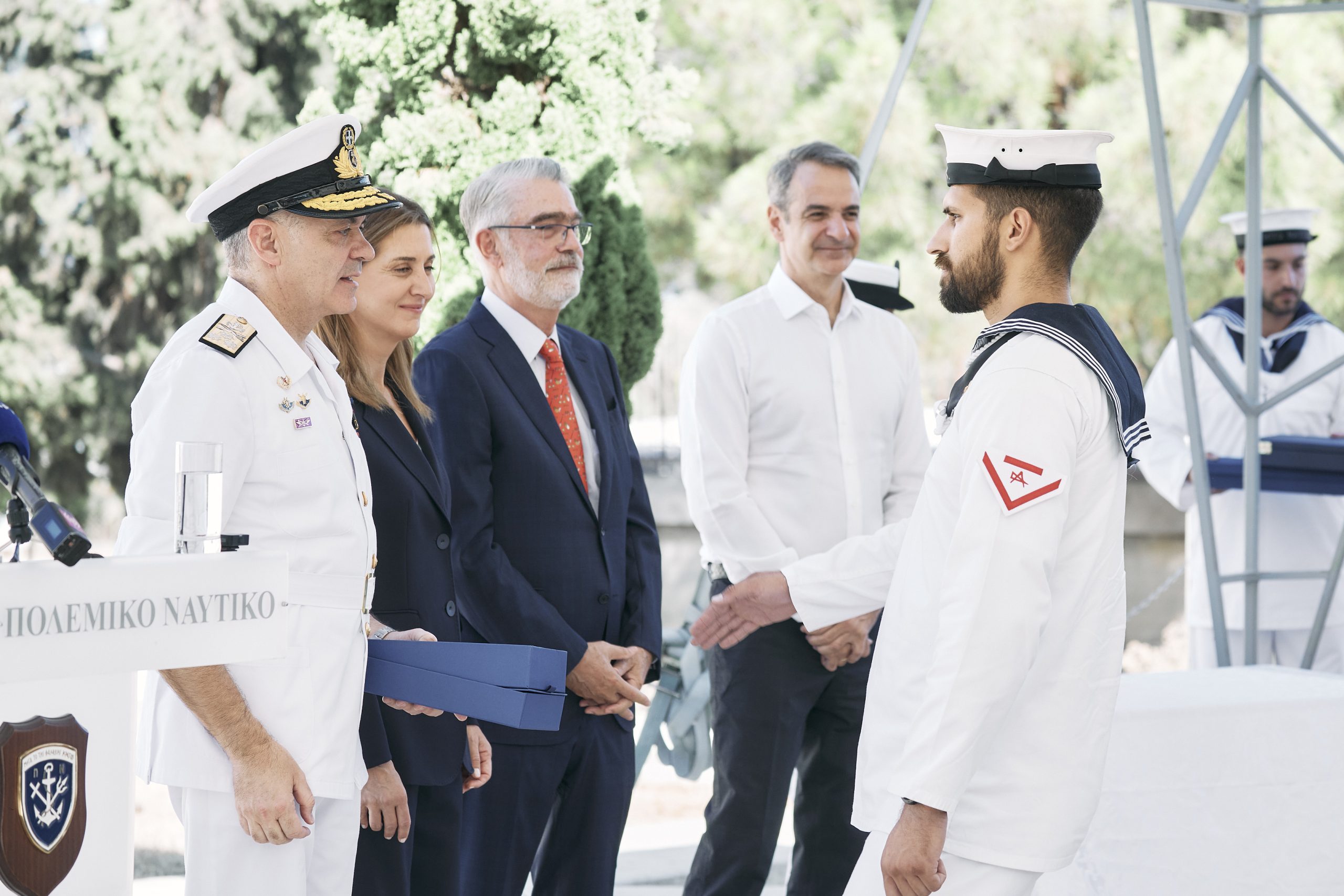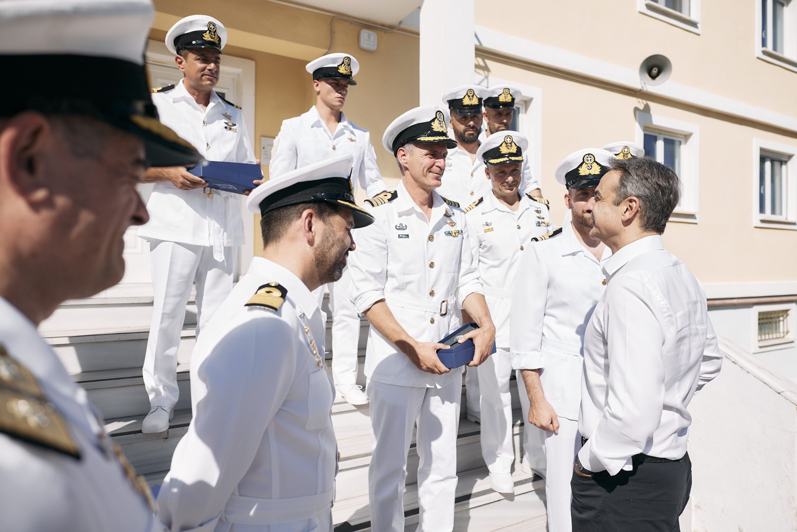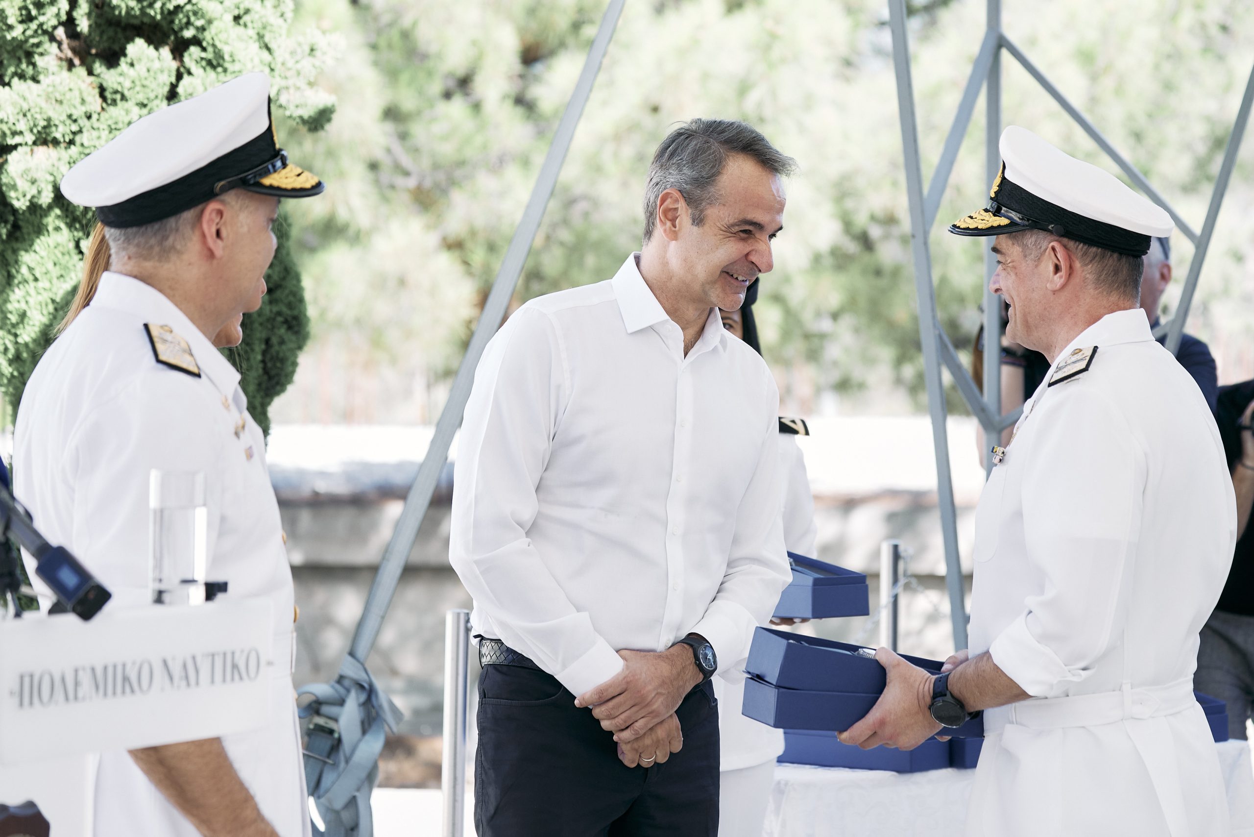 Και όταν επειδή σήμερα κλείνουν και έξι χρόνια από την ημέρα που ορκίστηκα ως πρωθυπουργός τον Ιούλιο του 2019, γνώριζα καλά την κατάσταση την οποία τότε παραλάβαμε. Ειδικά ως προς το Πολεμικό Ναυτικό, ως απότοκο μιας μακράς κρίσης. Είχαν πολύ καιρό να γίνουν σημαντικές επενδύσεις. Τώρα βέβαια είμαστε σε μια τελείως διαφορετική κατάσταση, με το Πολεμικό Ναυτικό να ετοιμάζεται να παραλάβει πριν το τέλος του έτους την πρώτη από τις κατά πάσα πιθανότητα τέσσερις νέες φρεγάτες Belharra, που θα αποτελέσουν την αιχμή του δόρατος για τη νέα εποχή στην οποία μπαίνει το Πολεμικό Ναυτικό. Και βέβαια δεν πρέπει να ξεχνάμε, έβλεπα κύριε κύριοι αρχηγοί τις φρεγάτες Belharra και αυτή η πολύ ενδιαφέρουσα κοψιά της πλώρης τους μας θύμισαν το θωρηκτό Αβέρωφ, το οποίο δεν πρέπει να ξεχνάμε ότι κι αυτό το θωρηκτό ήταν αποτέλεσμα μιας πολύ μεγάλης δωρεάς, η οποία έγινε σε μια διαφορετική εποχή. Ένα θωρηκτό το οποίο τόσο ταυτίστηκε όχι μόνο με την ιστορία του Πολεμικού Ναυτικού, αλλά με τη δημιουργία της σύγχρονης Ελλάδος, έτσι όπως την ξέρουμε.