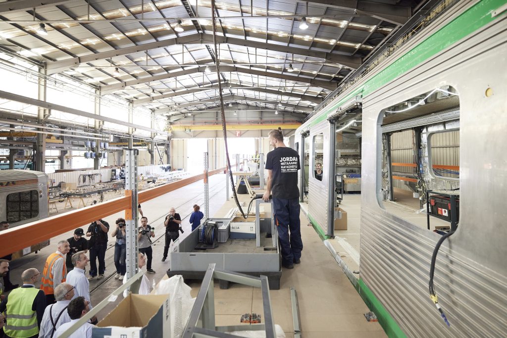 «Εδώ βλέπουμε μία εικόνα από το μέλλον, το οποίο θα γίνει σύντομα παρόν. Εδώ, σε αυτό το εργοστάσιο στον Βόλο, ανακαινίζεται ένας σημαντικός αριθμός από τους συρμούς της Γραμμής 1, του γνωστού σε όλους μας Ηλεκτρικού. Ουσιαστικά τα βαγόνια, τα τρένα θα γίνουν πρακτικά καινούργια με όλες τις ανέσεις, με κλιματισμό, με υποστήριξη των συμπολιτών μας με αναπηρία.