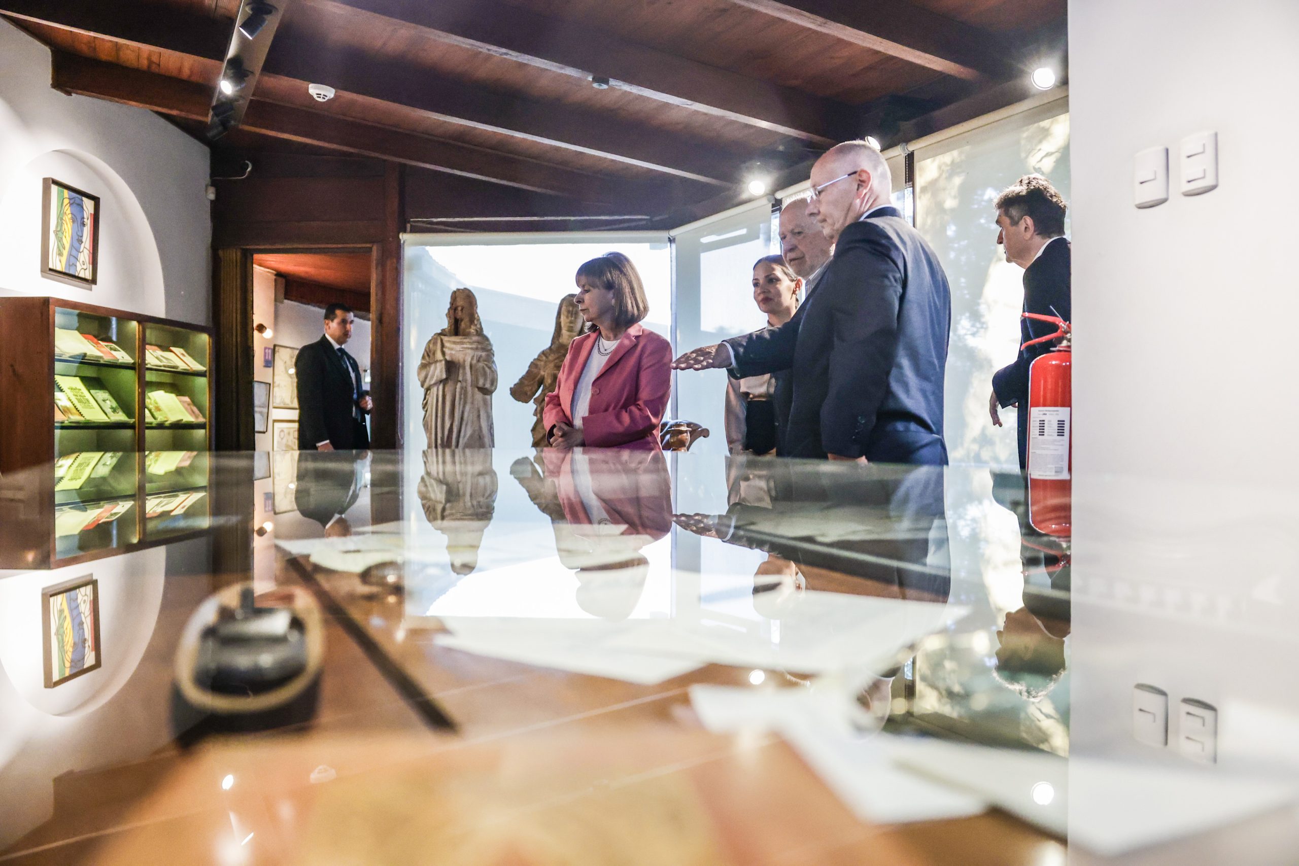 Την κυρία Σακελλαροπούλου υποδέχθηκε η υπουργός Πολιτισμού, Τεχνών και Πολιτιστικής Κληρονομιάς Carolina Arredondo και ο Διευθυντής του Μουσείου Fernando Saez.