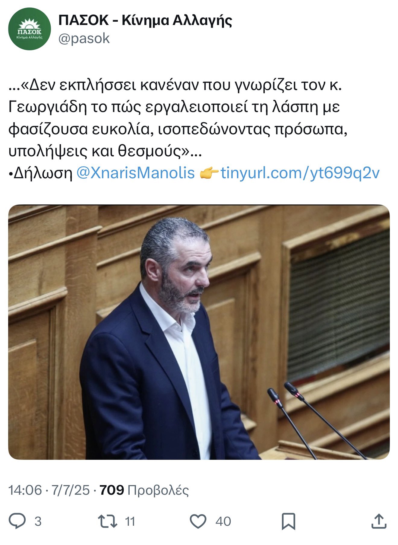 «Ο νυν βουλευτής του ΠΑΣΟΚ κ. Χνάρης είχε την εξής θέση: