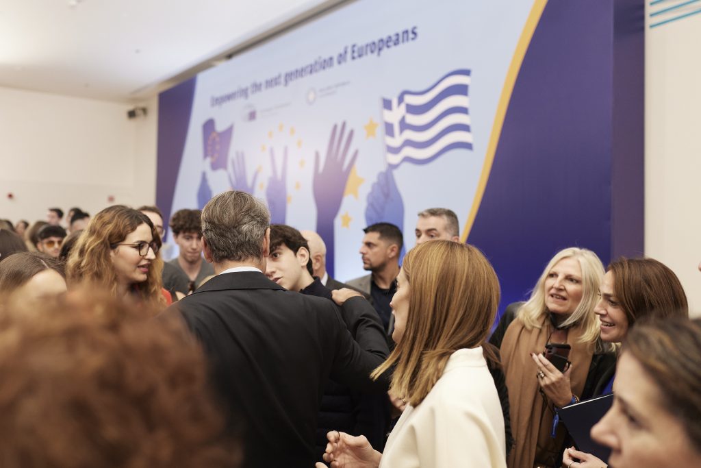 Ο πρωθυπουργός Κυριάκος Μητσοτάκης και η πρόεδρος του Ευρωπαϊκού Κοινοβουλίου Ρομπέρτα Μέτσολα συζήτησαν με νέες και νέους στην Εθνική Πινακοθήκη.