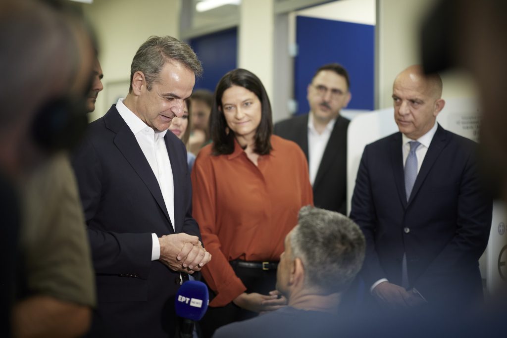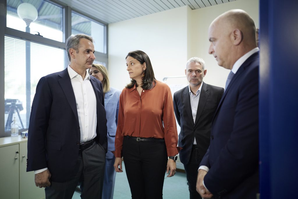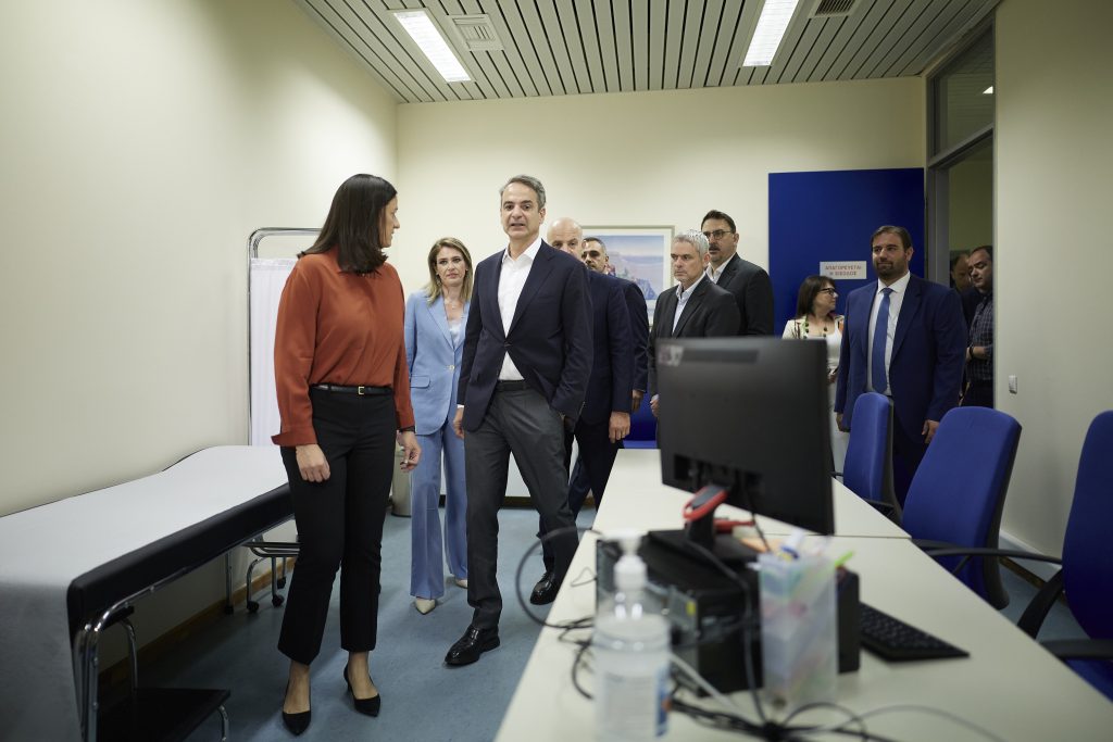 Ο Πρωθυπουργος ξεναγήθηκε στις εγκαταστάσεις του Κέντρου από την Υπουργό Εργασίας και Κοινωνικής Ασφάλισης Νίκη Κεραμέως και τον Διοικητή του e-ΕΦΚΑ Αλέξανδρο Βαρβέρη και συνομίλησε με ιατρούς, άλλους εργαζόμενους καθώς και πολίτες.
