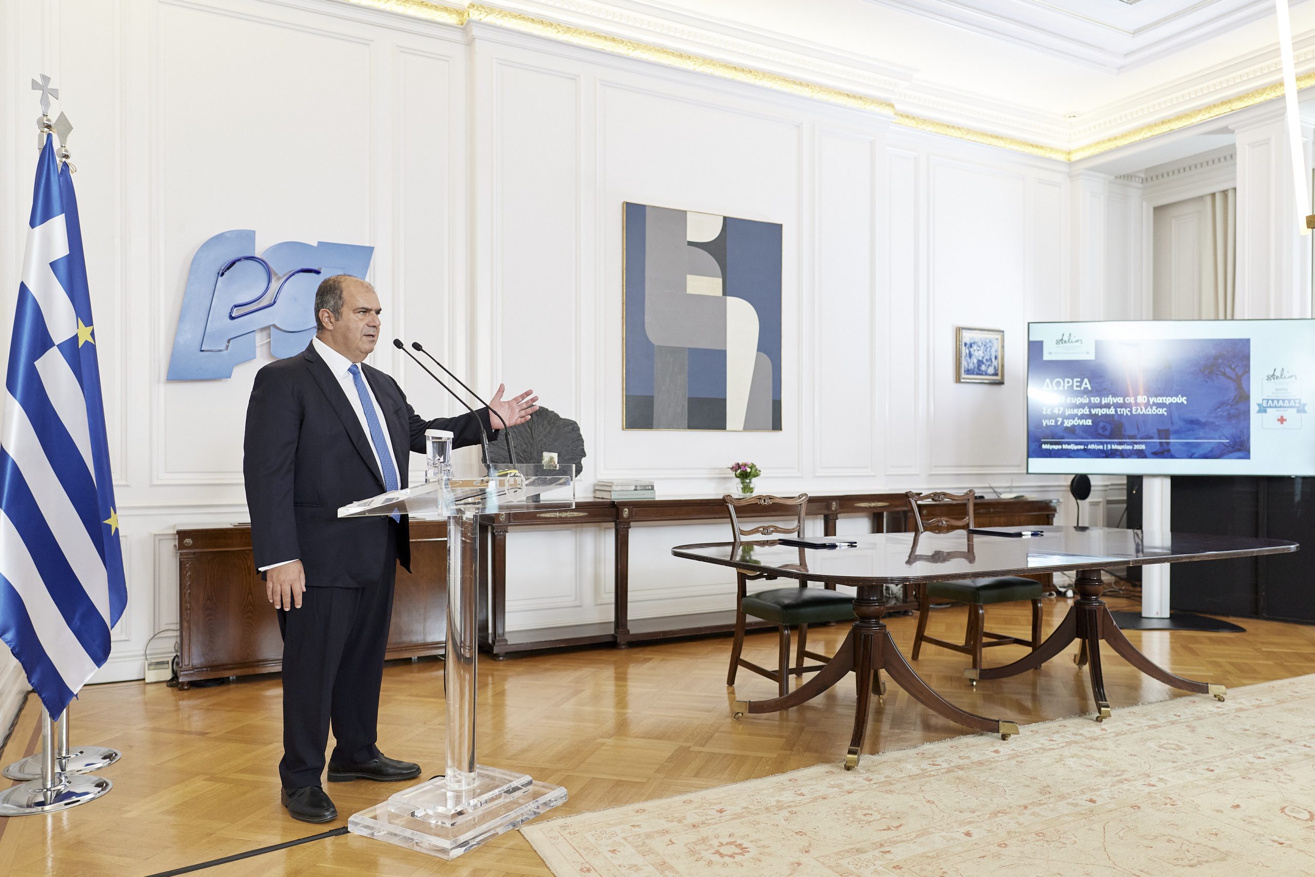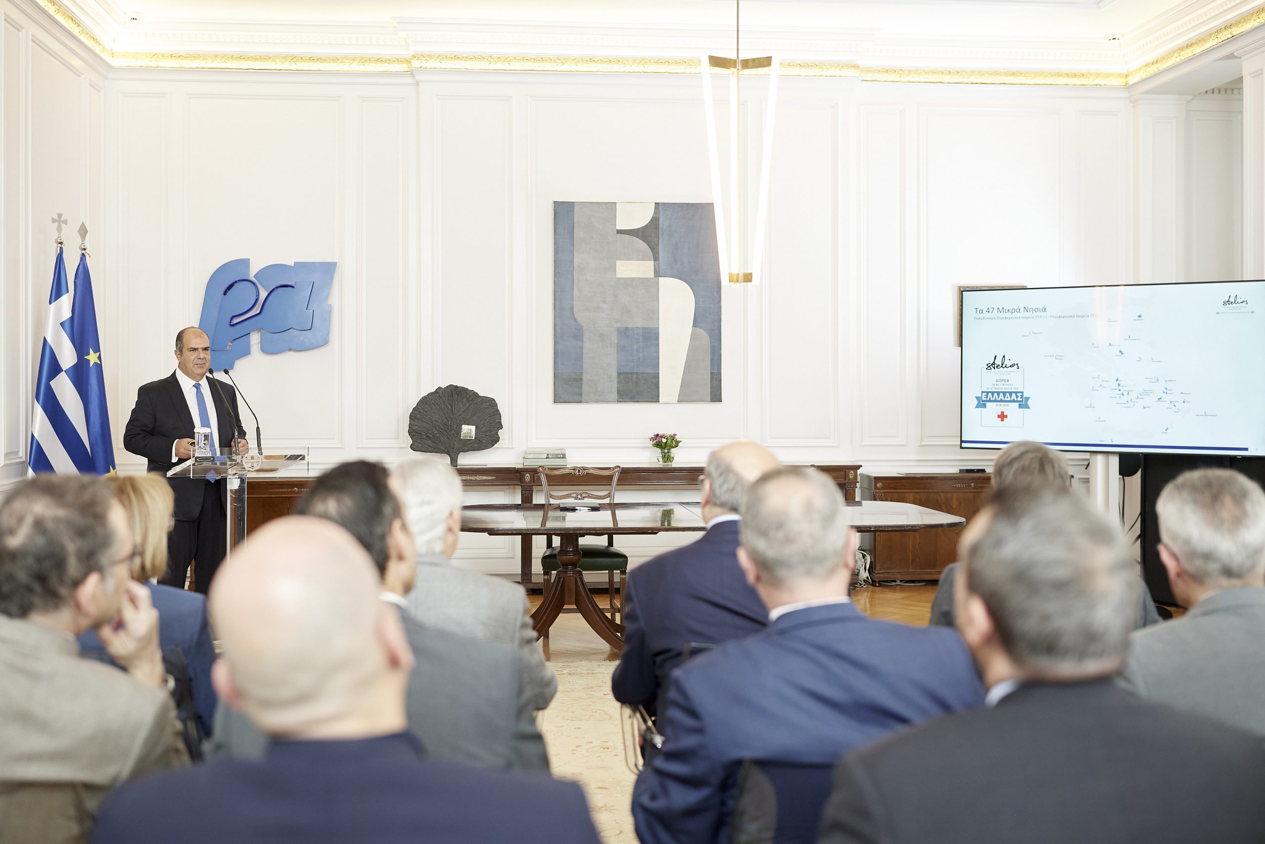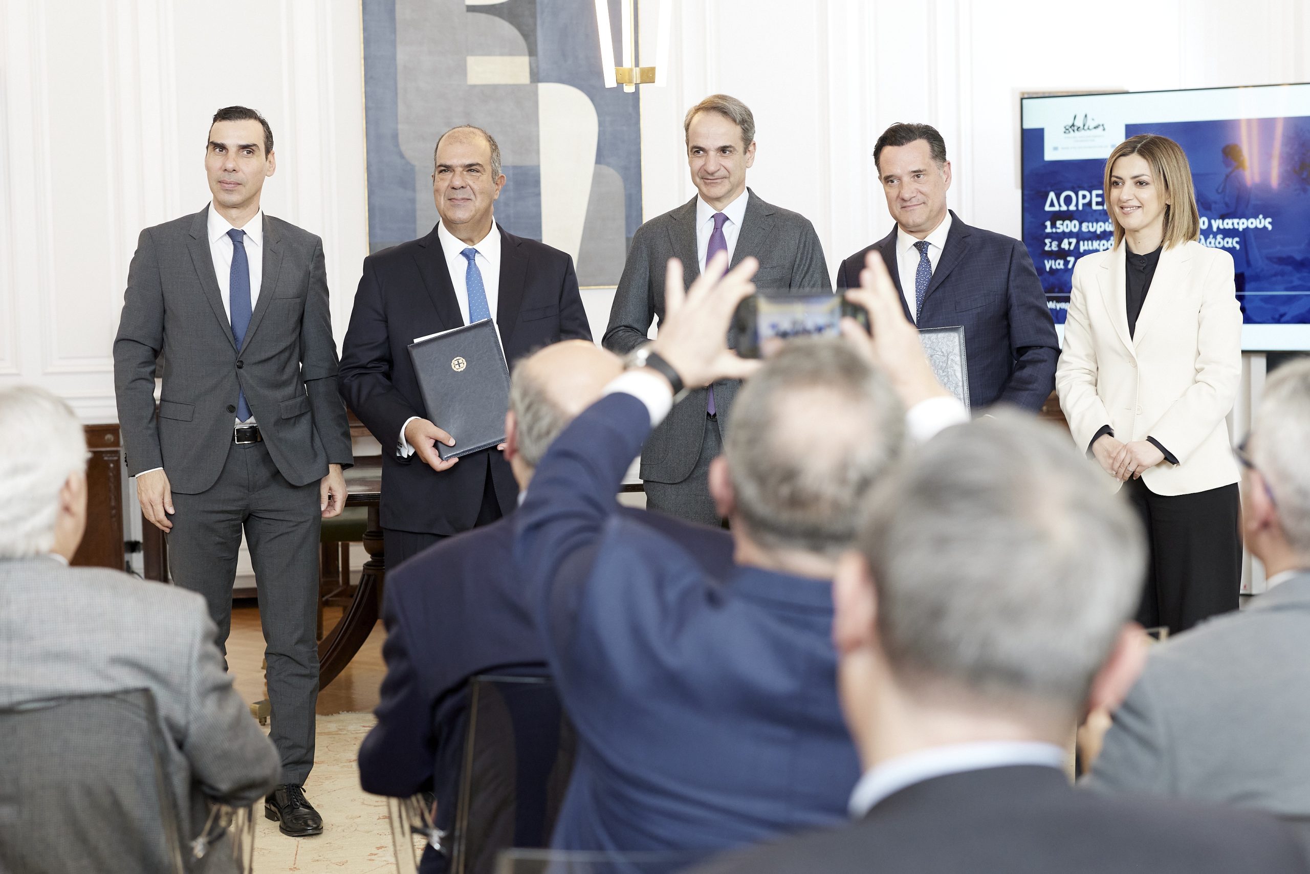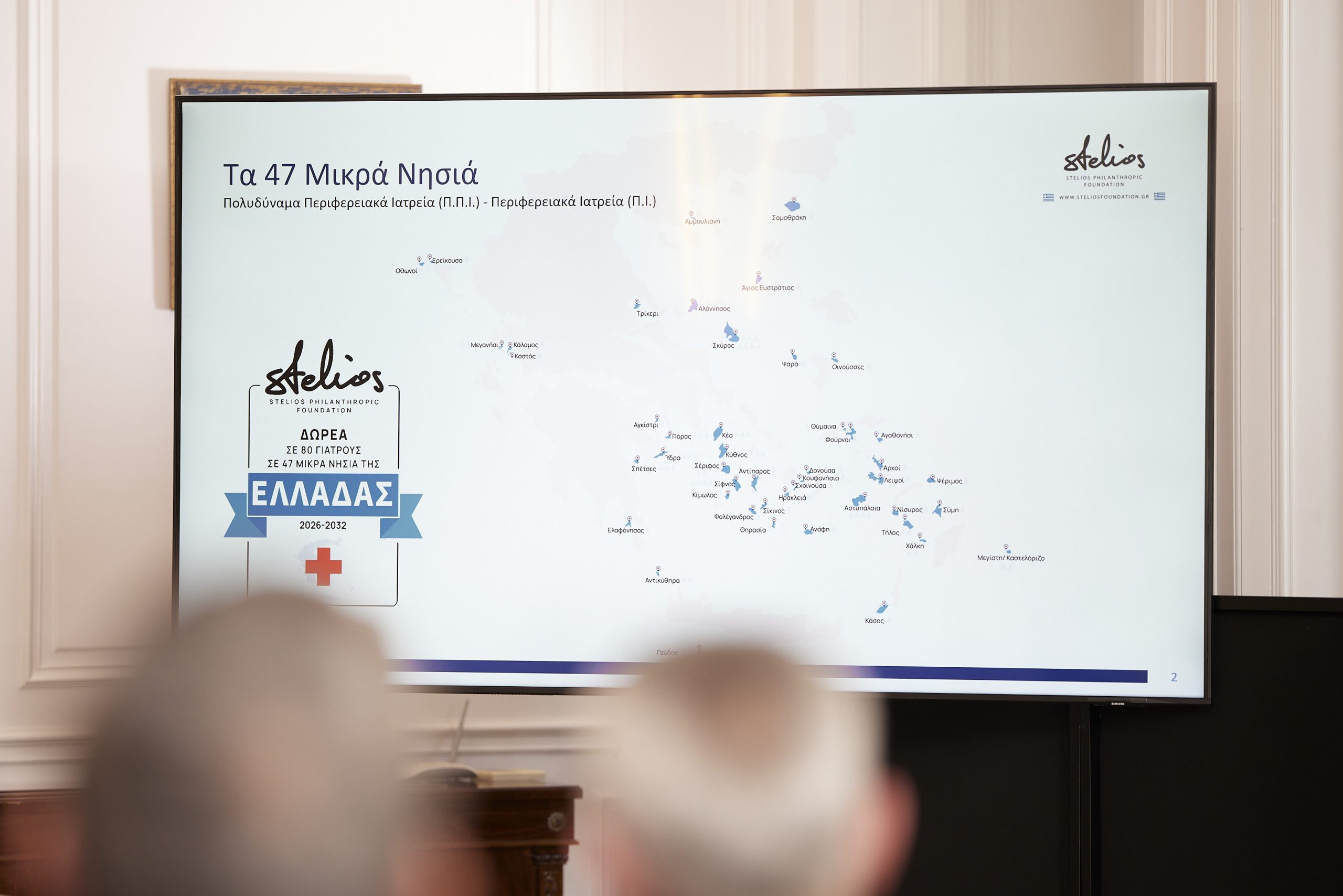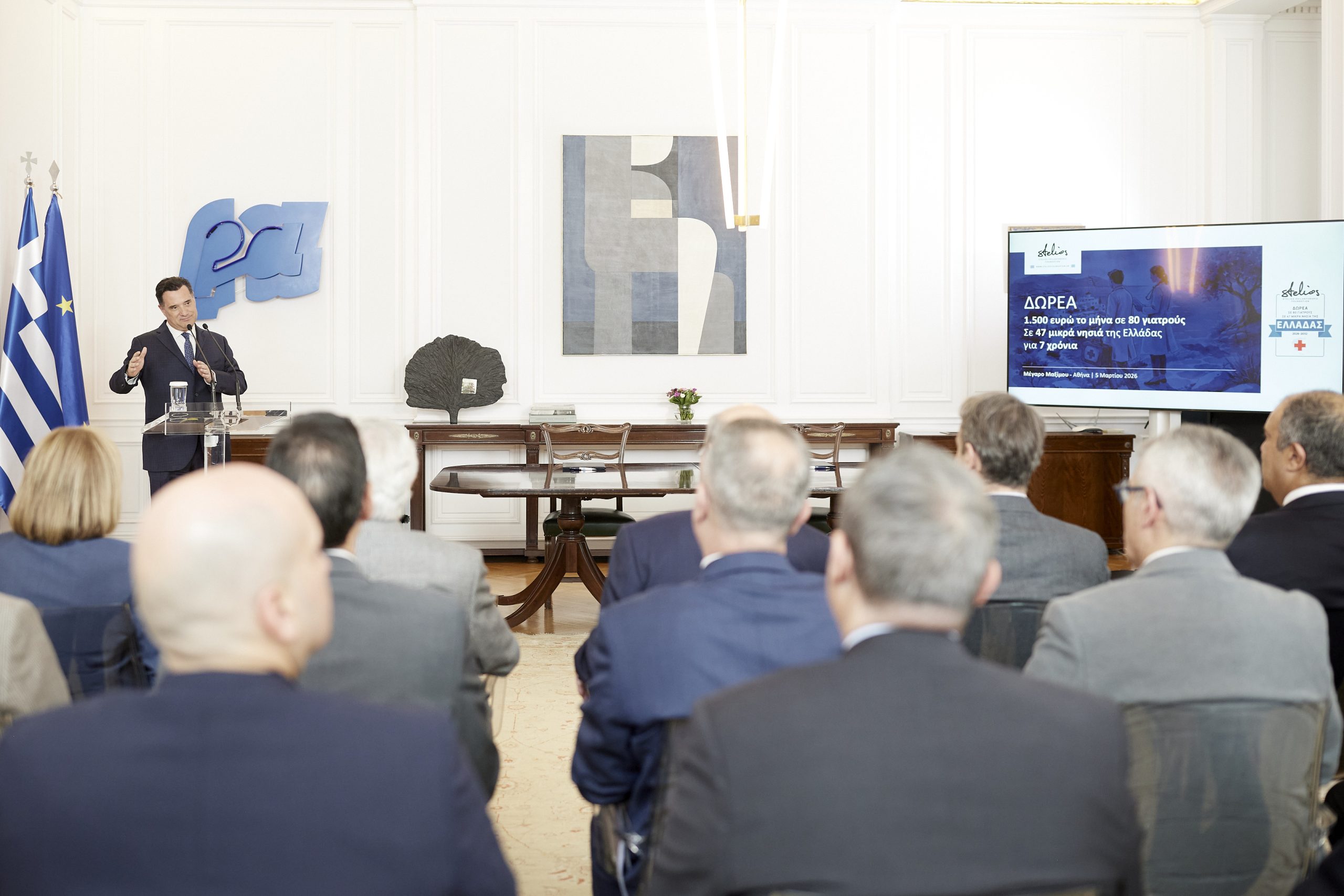 Ο Πρωθυπουργός Κυριάκος Μητσοτάκης παρέστη το μεσημέρι στην εκδήλωση παρουσίασης της δωρεάς του Φιλανθρωπικού Ιδρύματος Στέλιος Χατζηιωάννου, που αποσκοπεί στην ενίσχυση των αποδοχών 80 γιατρών και αγροτικών γιατρών που υπηρετούν με φυσική παρουσία σε 47 μικρά νησιά της Ελλάδας.
