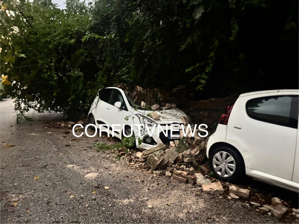Στο κέντρο της πόλης, σημειώθηκε κατάρρευση τμήματος τοιχίου παλιών οχυρώσεων, ενώ παράλληλα ξεριζώθηκε ένα αιωνόβιο δένδρο. Ως αποτέλεσμα, τρία αυτοκίνητα καταπλακώθηκαν στην οδό Στεφάνου Πάδοβα.