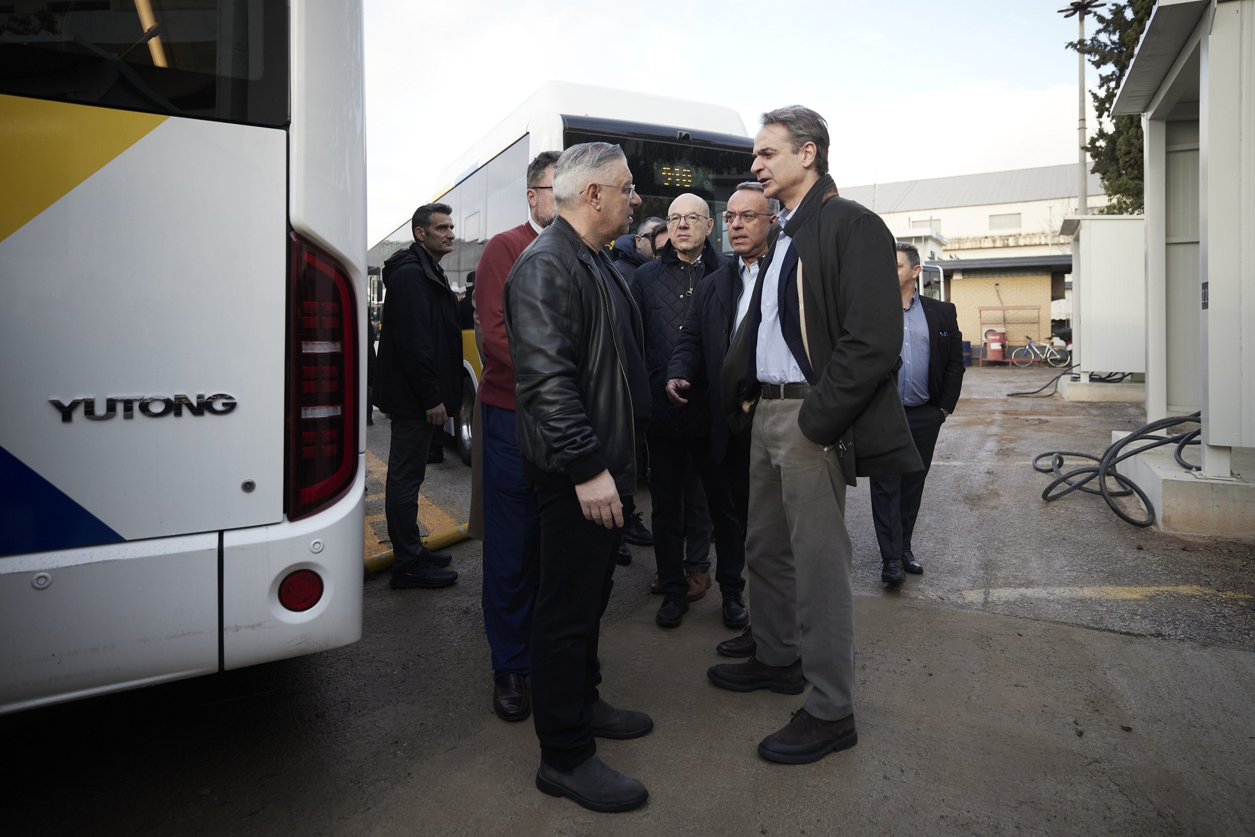 Το αμαξοστάσιο των Οδικών Συγκοινωνιών (Ο.ΣΥ.) στον Άγιο Ιωάννη Ρέντη, όπου στεγάζονται καινούργια ηλεκτροκίνητα λεωφορεία και λεωφορεία φυσικού αερίου, επισκέφθηκε το πρωί ο Πρωθυπουργός Κυριάκος Μητσοτάκης.