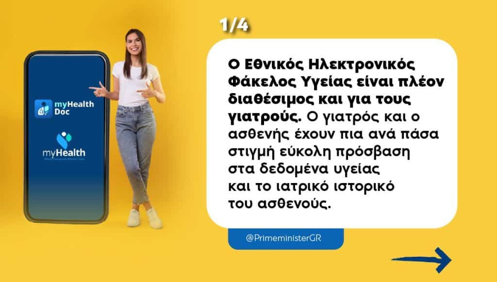 Συνεχίζω με την καθολική πρόσβαση πλέον όλων των γιατρών στον Ηλεκτρονικό Φάκελο Υγείας ασθενών που ενεργοποιήθηκε από την περασμένη Δευτέρα. Μέσω αυτού, ο γιατρός μπορεί εύκολα και γρήγορα να βλέπει το ιατρικό ιστορικό του ασθενούς -διαγνώσεις, συνταγογραφήσεις, εξετάσεις, θεραπείες- αποκτώντας μια πλήρη εικόνα που ενισχύει και τη συνέχεια και την ποιότητα της παρεχόμενης φροντίδας. Επιπλέον, το κράτος αποκτά για πρώτη φορά μια εθνική βάση αναφοράς με δεδομένα υγείας του πληθυσμού. Ο Ηλεκτρονικός Φάκελος θα εμπλουτίζεται σταδιακά με νέες υπηρεσίες, ανάλογα με τις ανάγκες του ΕΣΥ και τις τεχνολογικές δυνατότητες.