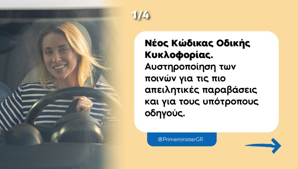 Περνάω στην ανασκόπησή μας. Πρώτο θέμα για σήμερα είναι η ψήφιση του νέου Κώδικα Οδικής Κυκλοφορίας που δίνει έμφαση στην πρόληψη και την αλλαγή νοοτροπίας όσων οδηγούν. Το είπα και στη Βουλή: δεν μπορούμε να συνθηκολογήσουμε με την ανομία και το χάος στους δρόμους που κόβουν απότομα το νήμα της ζωής τόσων ανθρώπων και διαλύουν οικογένειες. Ο νέος ΚΟΚ προβλέπει αυστηρότερες κυρώσεις για τις πιο συχνές και πιο επικίνδυνες παραβάσεις: υπερβολική ταχύτητα, παραβίαση του κόκκινου, συνδυασμός οδήγησης με αλκοόλ και κινητό, μη χρήση κράνους από τους δικυκλιστές, ενώ εισάγουμε και την έννοια της υποτροπής. Σύντομα θα θέσουμε σε εφαρμογή και ένα νέο ενιαίο πληροφοριακό σύστημα ψηφιακής βεβαίωσης κλήσεων με τη συνδρομή πάνω από 2.500 καμερών και με ποινές ανάλογα με την παράβαση. Προφανώς βέβαια, από μόνα τους αυτά δεν αρκούν. Πρέπει ως πολίτες να αλλάξουμε νοοτροπία για να ενισχυθεί η ασφάλεια στους ελληνικούς δρόμους. Εμείς από τη μεριά μας ως Πολιτεία, παράλληλα με όλα αυτά, αυξάνουμε και βελτιώνουμε τον στόλο των Μέσων Μαζικής Μεταφοράς σε Αθήνα και Θεσσαλονίκη και κάνουμε και κάτι ακόμα πολύ σημαντικό: προχωράμε στην πιλοτική 24ωρη λειτουργία του Μετρό και του Τραμ τα Σάββατα, έτσι ώστε να μπορούμε να διευκολύνουμε κυρίως τους νεότερους συμπολίτες μας να αποφεύγουν την οδήγηση, ειδικά όταν έχει προηγηθεί κατανάλωση αλκοόλ. Η υπερψήφιση του νομοσχεδίου από τα κόμματα της αντιπολίτευσης συνιστά στάση ευθύνης και δείχνει πως η μάχη για ασφαλείς δρόμους μας ενώνει. Δεν μπορούμε να συνεχίσουμε να θρηνούμε εκατοντάδες θύματα κάθε χρόνο. Είναι χρέος μας να αλλάξουμε τα δεδομένα.