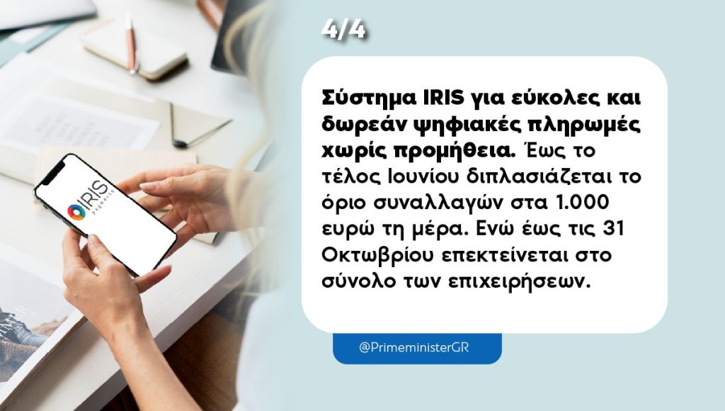 Άλλο ένα σύστημα που «έπιασε», κατά το κοινώς λεγόμενο, είναι το σύστημα IRIS που δίνει τη δυνατότητα για εύκολες και δωρεάν ψηφιακές πληρωμές χωρίς προμήθεια. Μάλιστα η Ελλάδα είναι σήμερα μία από τις χώρες της Ευρωζώνης με τον υψηλότερο βαθμό υιοθέτησης άμεσων πληρωμών χωρίς προμήθεια. Το 2020, οι πληρωμές μέσω IRIS ήταν μόλις 51 εκ. ευρώ. Το 2024 έφτασαν τα 6,4 δισ. ευρώ. Μέσα στο 2025, και ενώ είμαστε μόλις στα μισά της χρονιάς, οι χρήστες αγγίζουν ήδη τα 3,8 εκατομμύρια, ενώ πάνω από 565.000 ελεύθεροι επαγγελματίες και ατομικές επιχειρήσεις χρησιμοποιούν την υπηρεσία. Σε μόλις τέσσερα χρόνια λοιπόν, το IRIS έχει εξελιχθεί στη δημοφιλέστερη λύση άμεσων πληρωμών μεταξύ ιδιωτών, ιδιαίτερα στην ηλικιακή ομάδα 18-35 ετών. Σε αυτό συνέβαλαν και οι δύο νομοθετικές μας παρεμβάσεις για τη διάδοση των άμεσων πληρωμών σε όλη την οικονομία, από τον ιδιώτη μέχρι τον επαγγελματία και την επιχείρηση. Και συνεχίζουμε: έως το τέλος Ιουνίου το ημερήσιο όριο συναλλαγών διπλασιάζεται στα 1.000 ευρώ την ημέρα, ενώ έως τις 31 Οκτωβρίου, το IRIS επεκτείνεται στο σύνολο των επιχειρήσεων. Ένα 100% ελληνικό σύστημα πληρωμών δείχνει τον δρόμο για το πώς η Ευρώπη μπορεί να αποκτήσει στρατηγική αυτονομία στον τομέα των πληρωμών, αλλά και στη νέα εποχή της χρηματοοικονομικής τεχνολογίας.