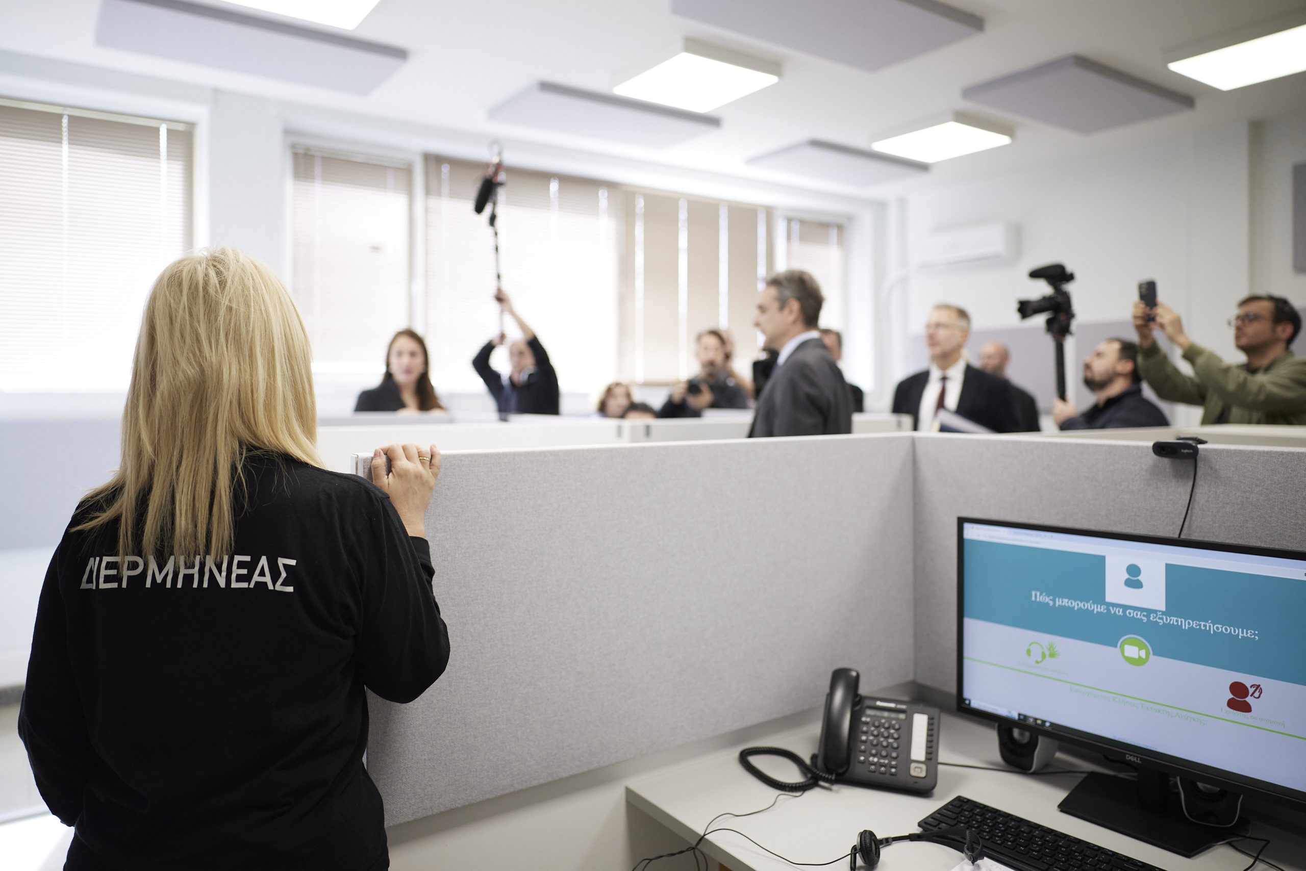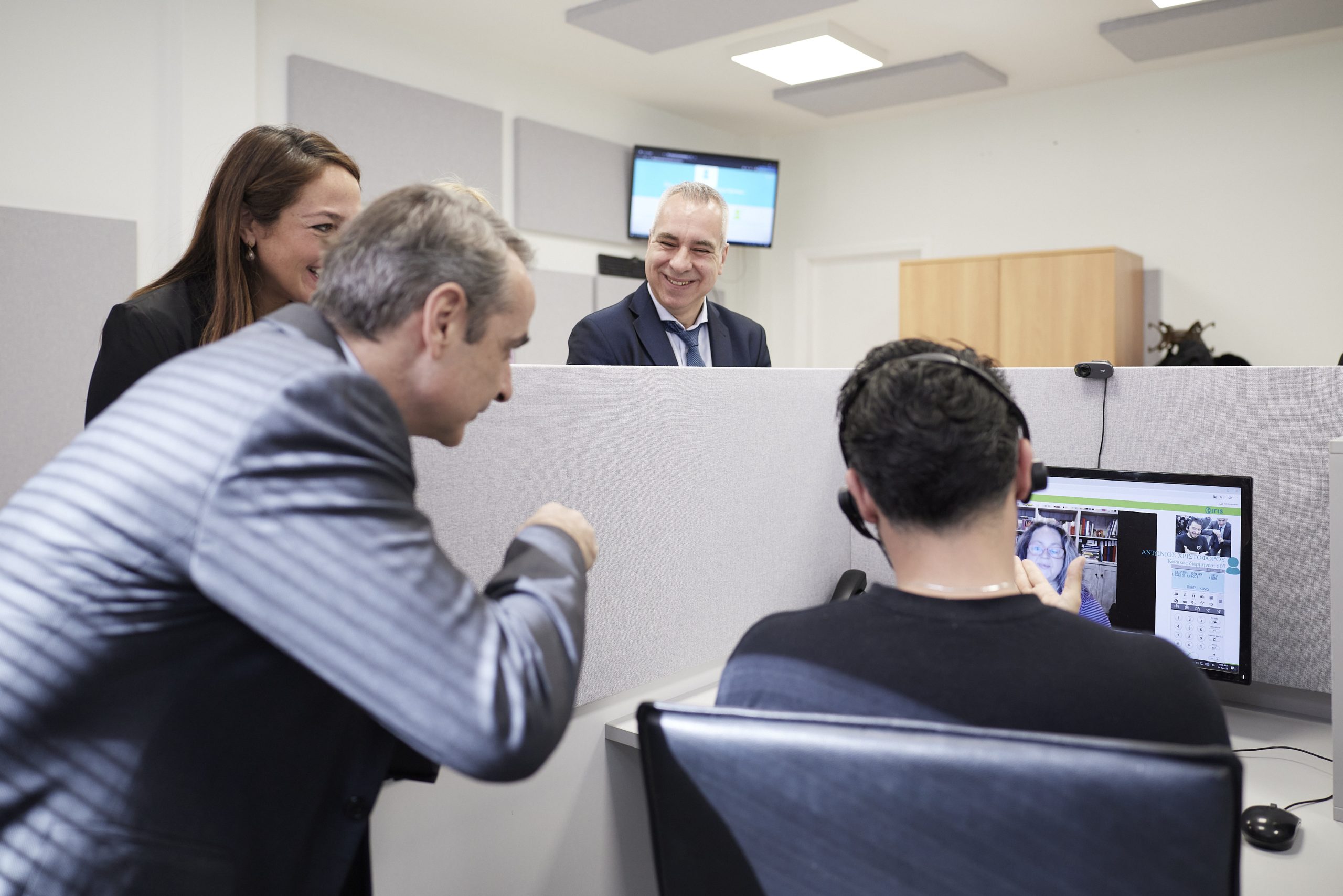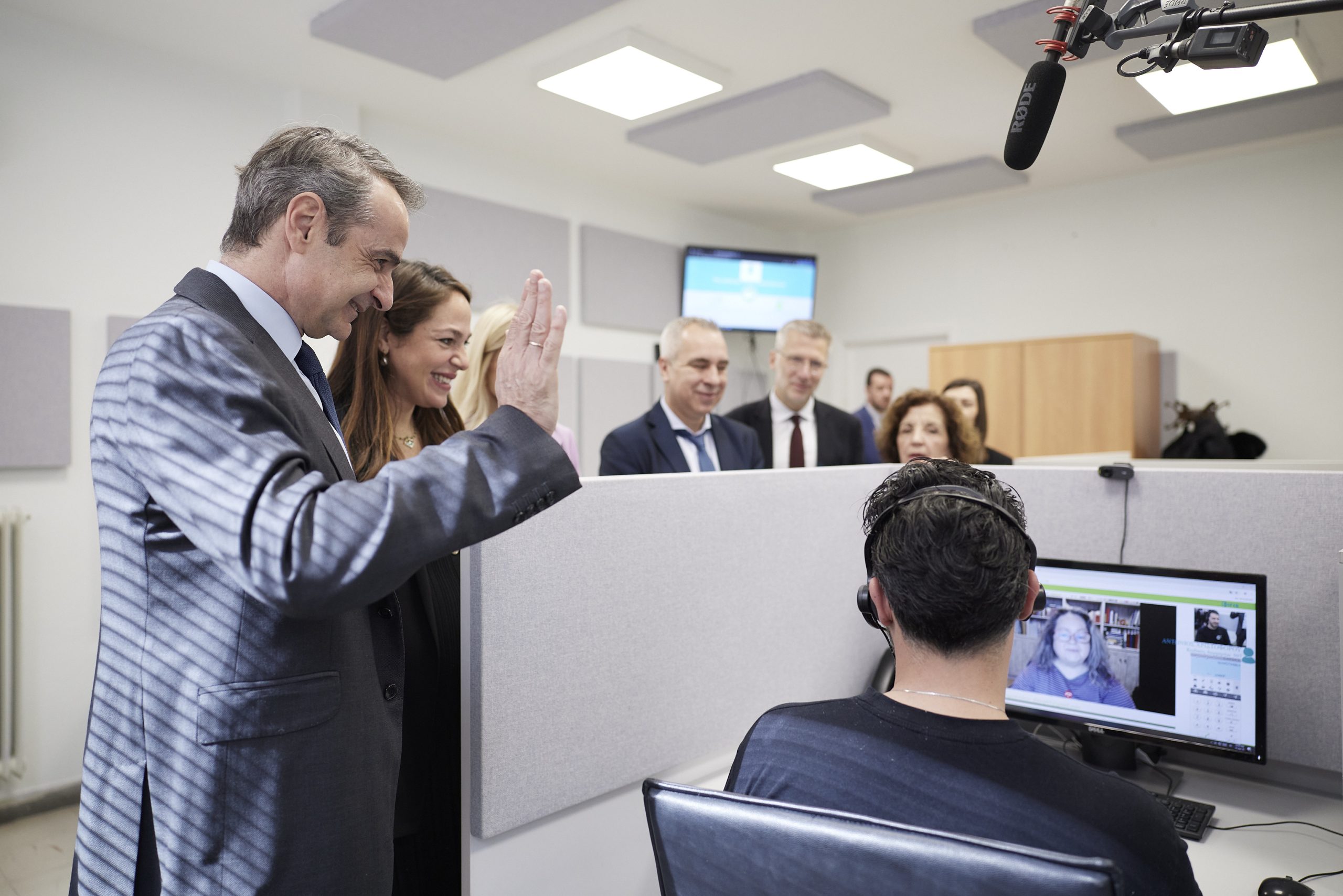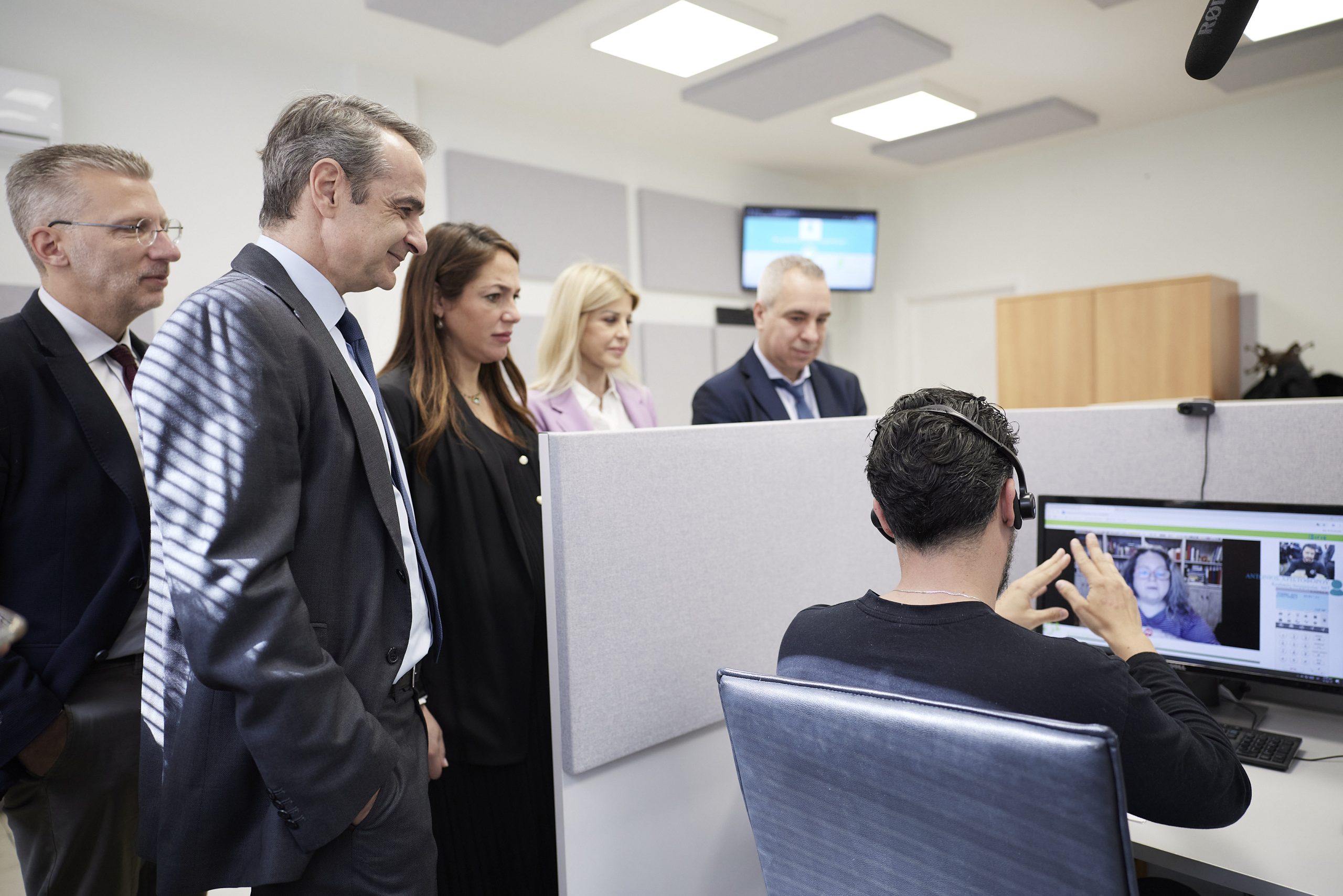 Κατά την παραμονή του στο Εθνικό Κέντρο Κωφών, ο Πρωθυπουργός επισκέφθηκε το κέντρο εξ αποστάσεως διερμηνείας που στεγάζεται σε ειδικά διαμορφωμένη αίθουσα του Κέντρου, όπου ενημερώθηκε για τη λειτουργία της υπηρεσίας και συνομίλησε με τους διερμηνείς που τη στελεχώνουν. Ο Πρωθυπουργός και η Υπουργός Κοινωνικής Συνοχής και Οικογένειας Δόμνα Μιχαηλίδου είχαν επίσης την ευκαιρία να συνομιλήσουν με μία χρήστη της υπηρεσίας και να την ενημερώσουν σχετικά με την ανακοίνωση που προηγήθηκε για τη διεύρυνση του επιδόματος κωφών και βαρήκοων.
