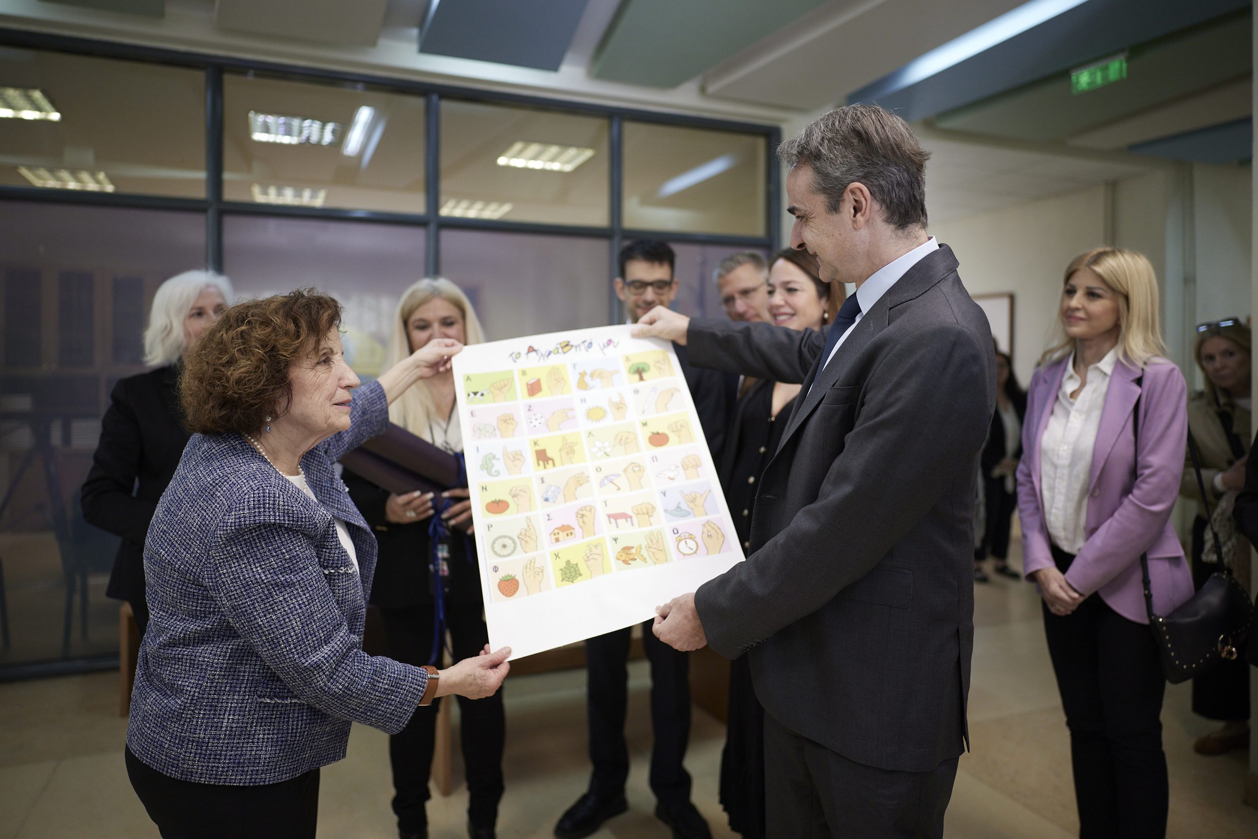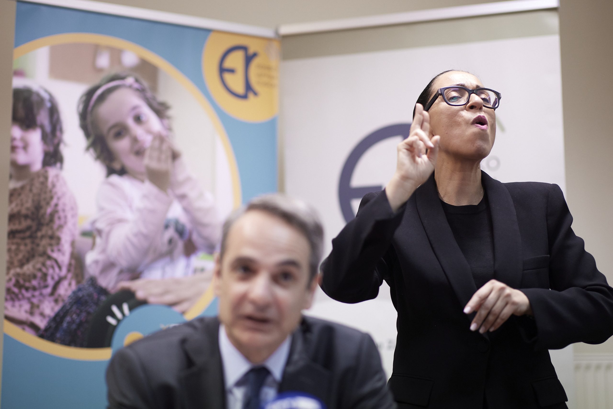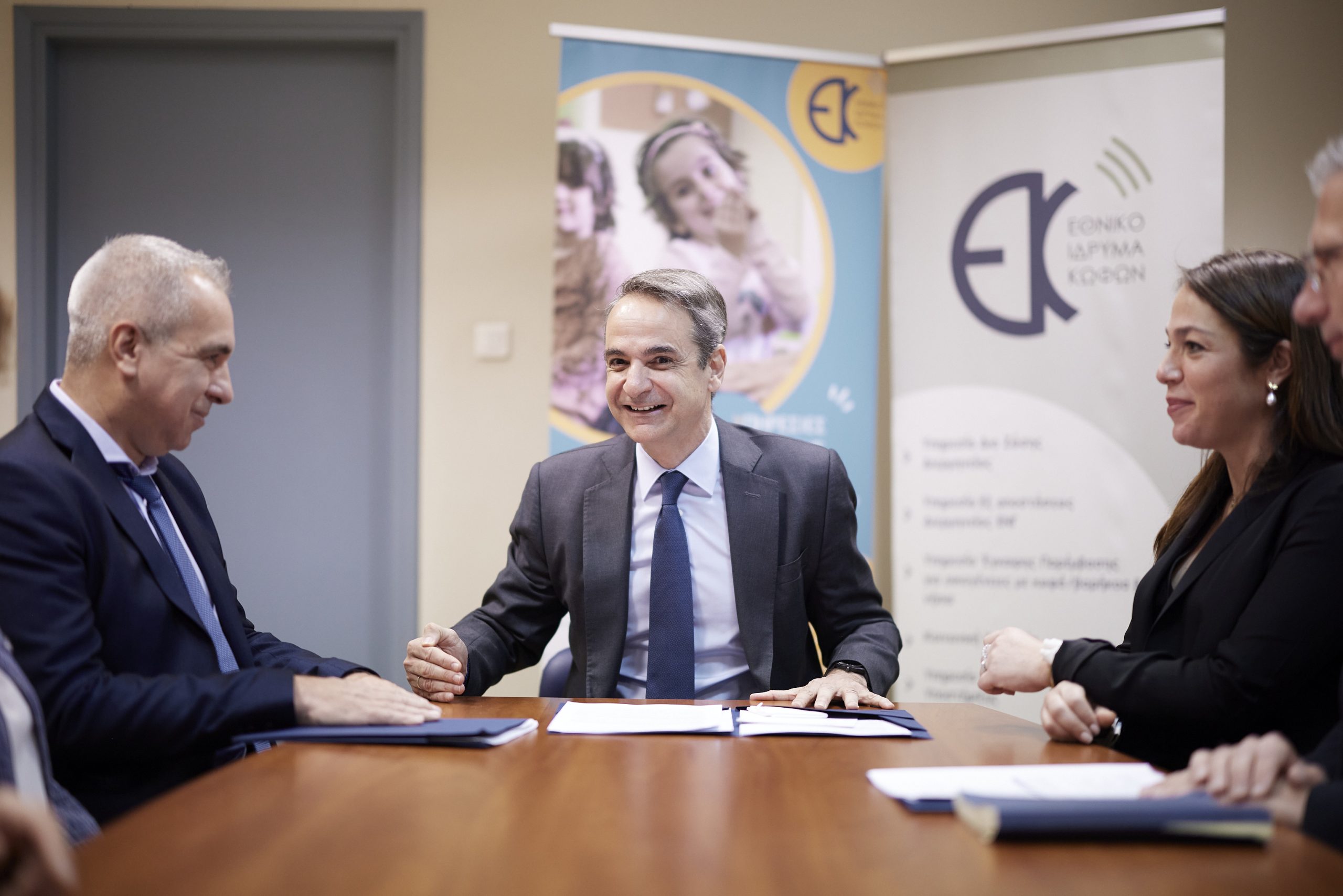 Ο Κυριάκος Μητσοτάκης ενημερώθηκε από την Πρόεδρο του ΕΙΚ, Βενέττα Λαμπροπούλου, για το πολύπλευρο έργο του φορέα, ειδικά για την εξατομικευμένη στήριξη που παρέχει σε μικρά παιδιά που διαγιγνώσκονται με προβλήματα ακοής, καθώς και για άλλα ζητήματα που απασχολούν την κοινότητα των κωφών και βαρήκοων πολιτών.