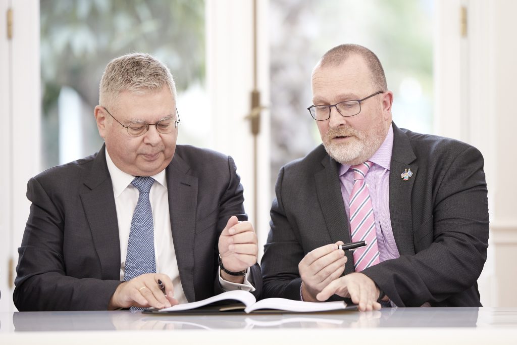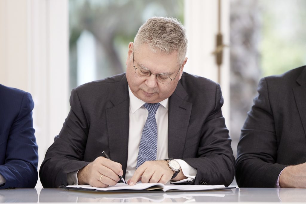 Παρουσία του Πρωθυπουργού Κυριάκου Μητσοτάκη υπογράφηκαν στο Μέγαρο Μαξίμου οι συμφωνίες μίσθωσης μεταξύ της Ελληνικής Δημοκρατίας και της κοινοπραξίας Chevron – HELLENiQ ENERGY που αφορούν στην παραχώρηση αποκλειστικών δικαιωμάτων έρευνας και εκμετάλλευσης υδρογονανθράκων σε θαλάσσιες περιοχές νότια της Πελοποννήσου και της Κρήτης.
