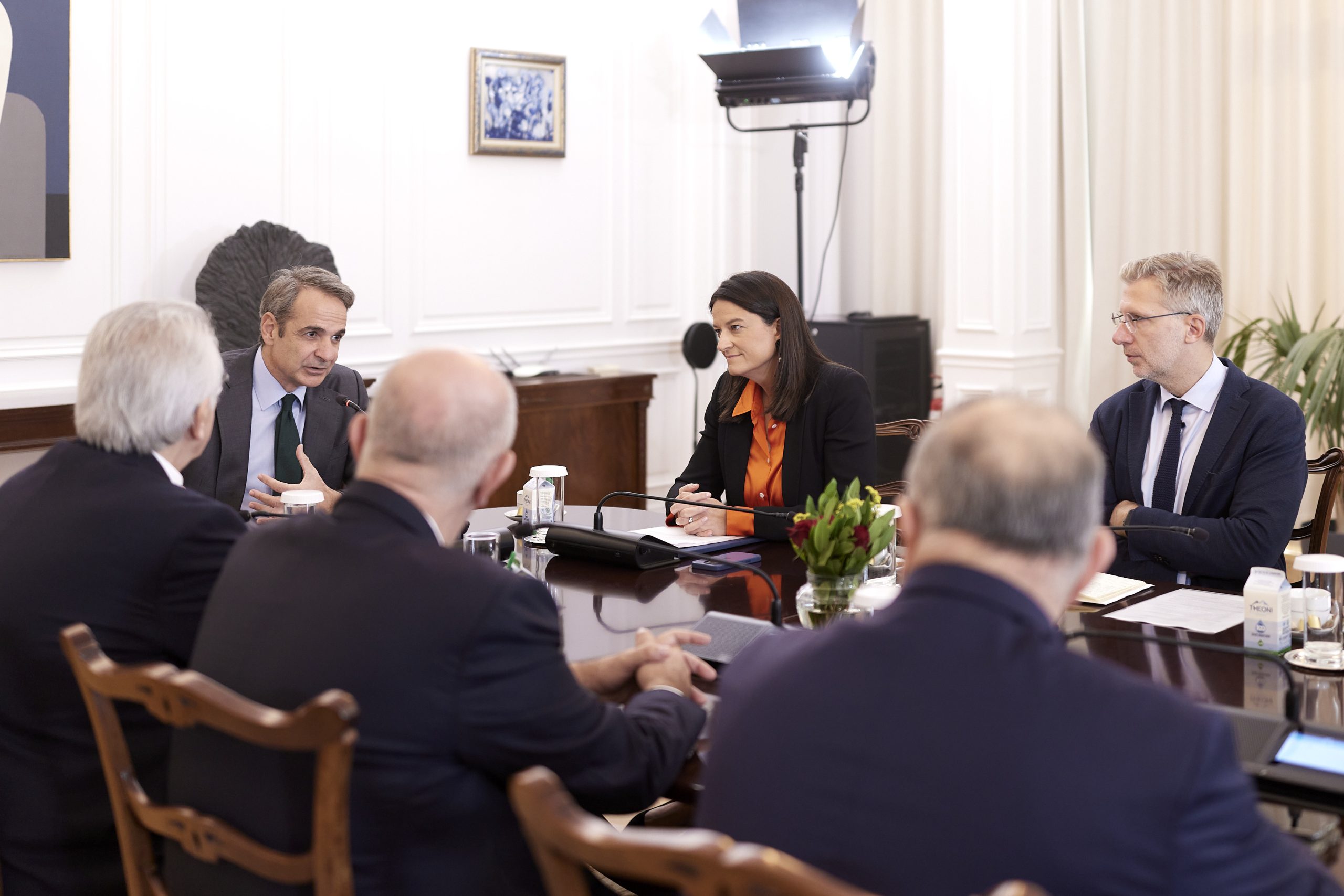 Ο Πρωθυπουργός Κυριάκος Μητσοτάκης, με αφορμή την Κοινωνική Συμφωνία για τις Συλλογικές Συμβάσεις Εργασίας, προήδρευσε το πρωί σε σύσκεψη με την Υπουργό Εργασίας και Κοινωνικής Ασφάλισης Νίκης Κεραμέως και εκπροσώπους των εθνικών κοινωνικών εταίρων, στο Μέγαρο Μαξίμου.