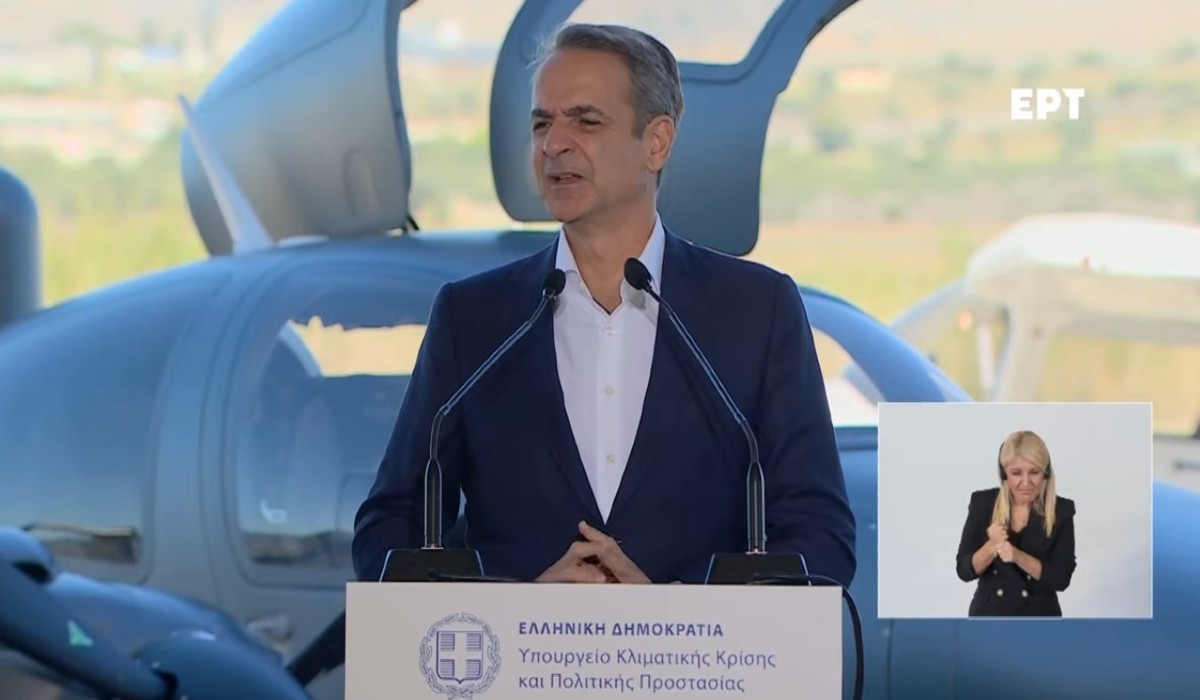 «Με πολύ μεγάλη χαρά υποδεχόμαστε σήμερα τα πρώτα ιδιόκτητα αεροσκάφη στην ιστορία του Πυροσβεστικού Σώματος», ανέφερε ο πρωθυπουργός Κυριάκος Μητσοτάκης μιλώντας στην εκδήλωση του υπουργείου Κλιματικής Κρίσης και Πολιτικής Προστασίας για την παραλαβή τριών αεροσκαφών Diamond DA62 MPP του Πυροσβεστικού Σώματος, στο Αεροδρόμιο Μεγάρων.