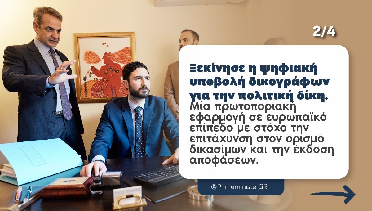 Στον τομέα της Δικαιοσύνης, είχα την ευκαιρία να δω από κοντά πώς μια μεταρρύθμιση αλλάζει στην πράξη την καθημερινότητα. Μαζί με έναν δικηγόρο, παρακολούθησα βήμα-βήμα τη λειτουργία του ψηφιακού δικαστικού φακέλου που τέθηκε πρόσφατα σε παραγωγική λειτουργία. Μέσα σε μόλις δέκα λεπτά, από τον υπολογιστή του γραφείου του, ολοκληρώθηκε η κατάθεση αγωγής για υπόθεση Κτηματολογίου, μια διαδικασία που μέχρι πρόσφατα απαιτούσε τουλάχιστον δύο εργάσιμες ημέρες, μετακινήσεις και γραφειοκρατία. Πλέον, με την ψηφιακή κατάθεση ορίζεται αυτόματα και η δικάσιμος, ώστε οι υποθέσεις να προσδιορίζονται σε λίγους μήνες αντί για χρόνια. Αυτή είναι η αλλαγή που επιδιώκουμε: λιγότερη ταλαιπωρία, περισσότερη ταχύτητα και μια Δικαιοσύνη που περνά σε μια νέα εποχή. Συγχαρητήρια σε όσους εργάστηκαν για να υλοποιηθεί αυτό το έργο.