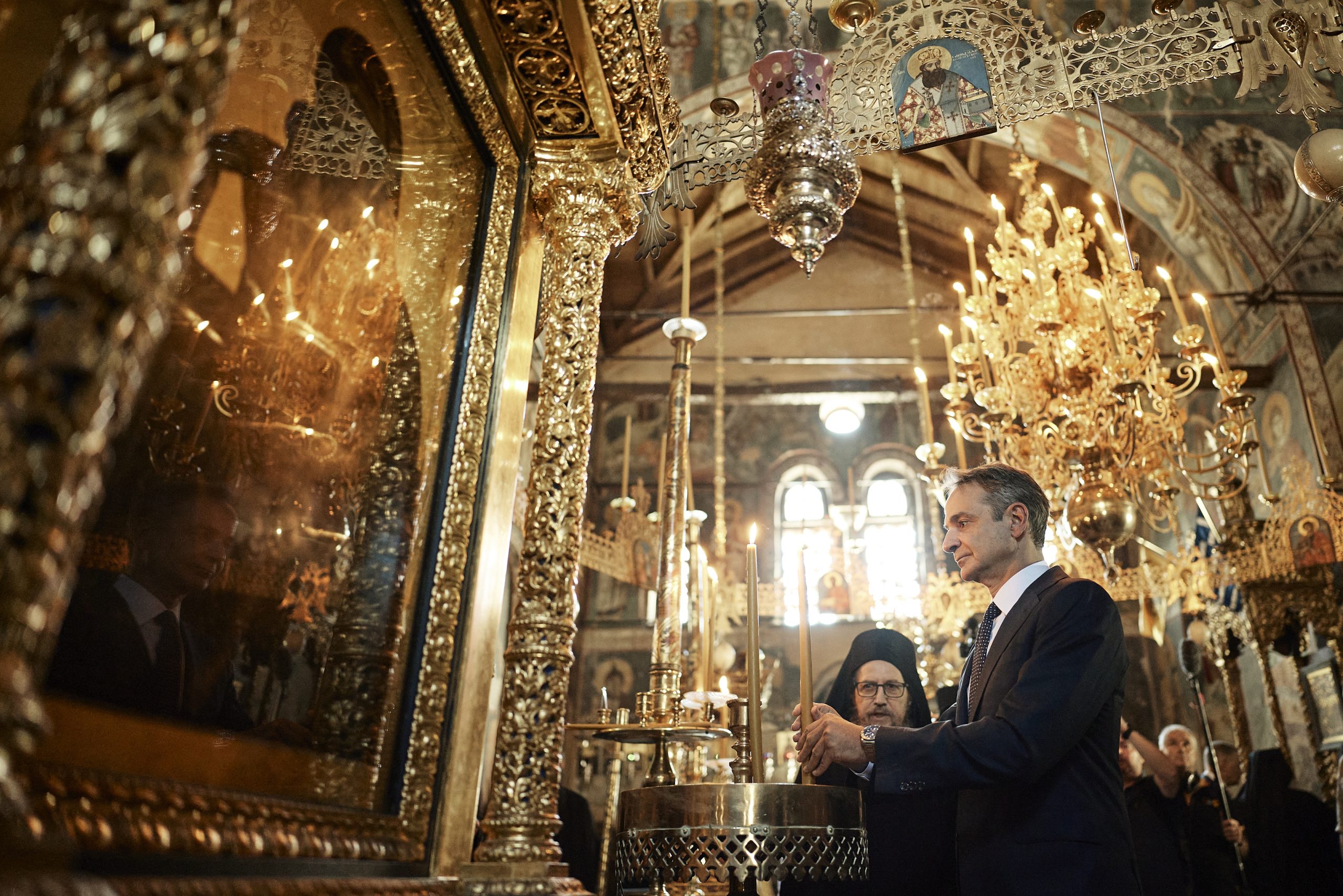 «Φωτισμένο κέντρο πνευματικής προσφοράς, που γίνεται πυξίδα σε έναν κόσμο, που συχνά χάνει τον προσανατολισμό του», χαρακτήρισε το Άγιο Όρος ο πρωθυπουργός Κυριάκος Μητσοτάκης, κατά την αντιφώνησή του στον Ιερό Ναό του Πρωτάτου στις Καρυές και υπογράμμισε την «έμπρακτη βούληση της κυβέρνησης να σταθεί αρωγός στη διαχρονική του πορεία».