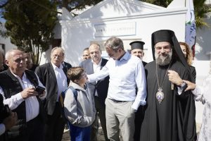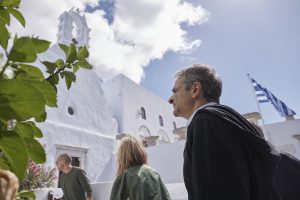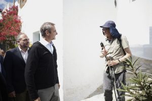 Ο Πρωθυπουργός είχε νωρίτερα την ευκαιρία να περπατήσει στο κέντρο της Χώρας της Αμοργού, όπου συνομίλησε με κατοίκους, επισκέπτες και καταστηματάρχες.