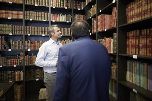 Στα εγκαίνια της Δημοτικής Βιβλιοθήκης Αμοργού βρέθηκε ο πρωθυπουργός Κυριάκος Μητσοτάκης στο πλαίσιο της επίσκεψής του στο νησί για τα θαλάσσια πάρκα και το πρόγραμμα Αμοργόραμα, για τη βιώσιμη ανάπτυξη του νησιού.