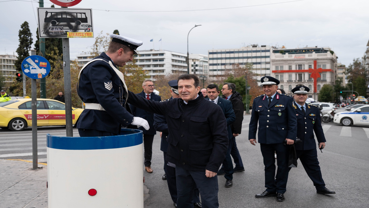 Τον κ. Υπουργό συνόδευαν ο Αρχηγός της Ελληνικής Αστυνομίας, Αντιστράτηγος Δημήτριος Μάλλιος, ο Γενικός Αστυνομικός Διευθυντής Αττικής, Υποστράτηγος Αθανάσιος Κάμπρας και ο Διευθυντής της Διεύθυνσης Τροχαίας Αττικής, Ταξίαρχος Σωτήριος Καλταμπάνης.
