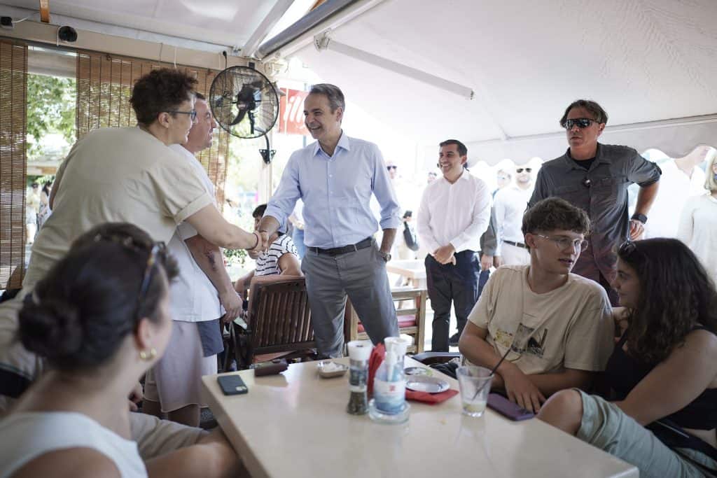 Στο πλαίσιο της επίσκεψής του στη Σκιάθο, ο Πρωθυπουργός έχει την ευκαιρία να συνομιλήσει με καταστηματάρχες, κατοίκους και επισκέπτες που βρίσκονταν στο λιμάνι.