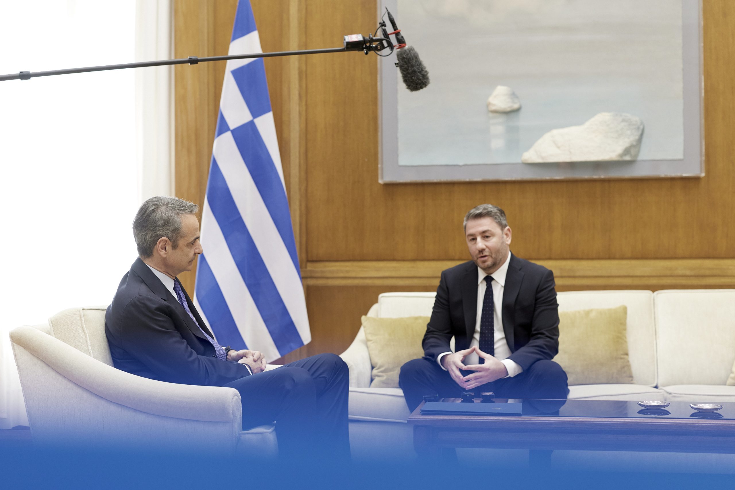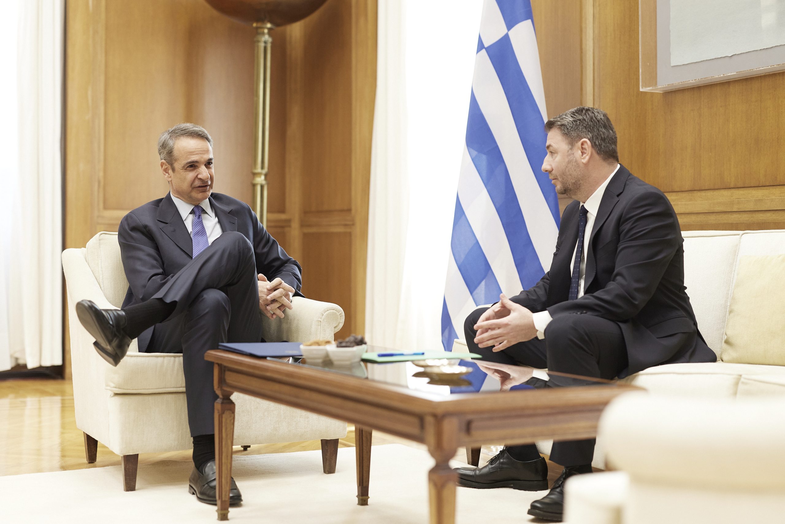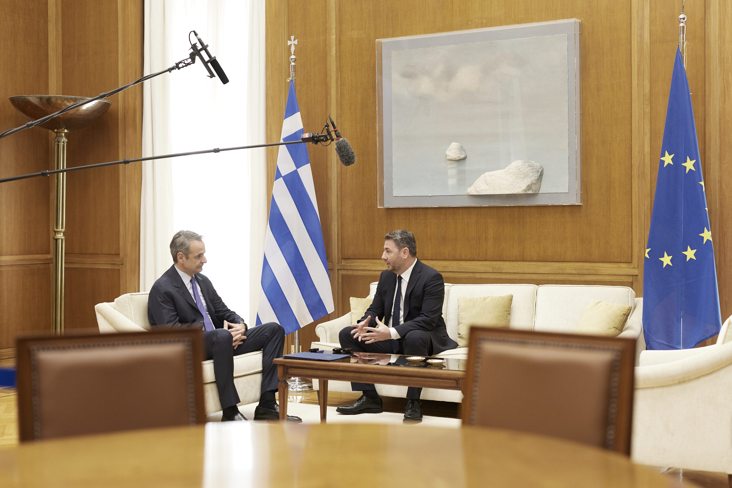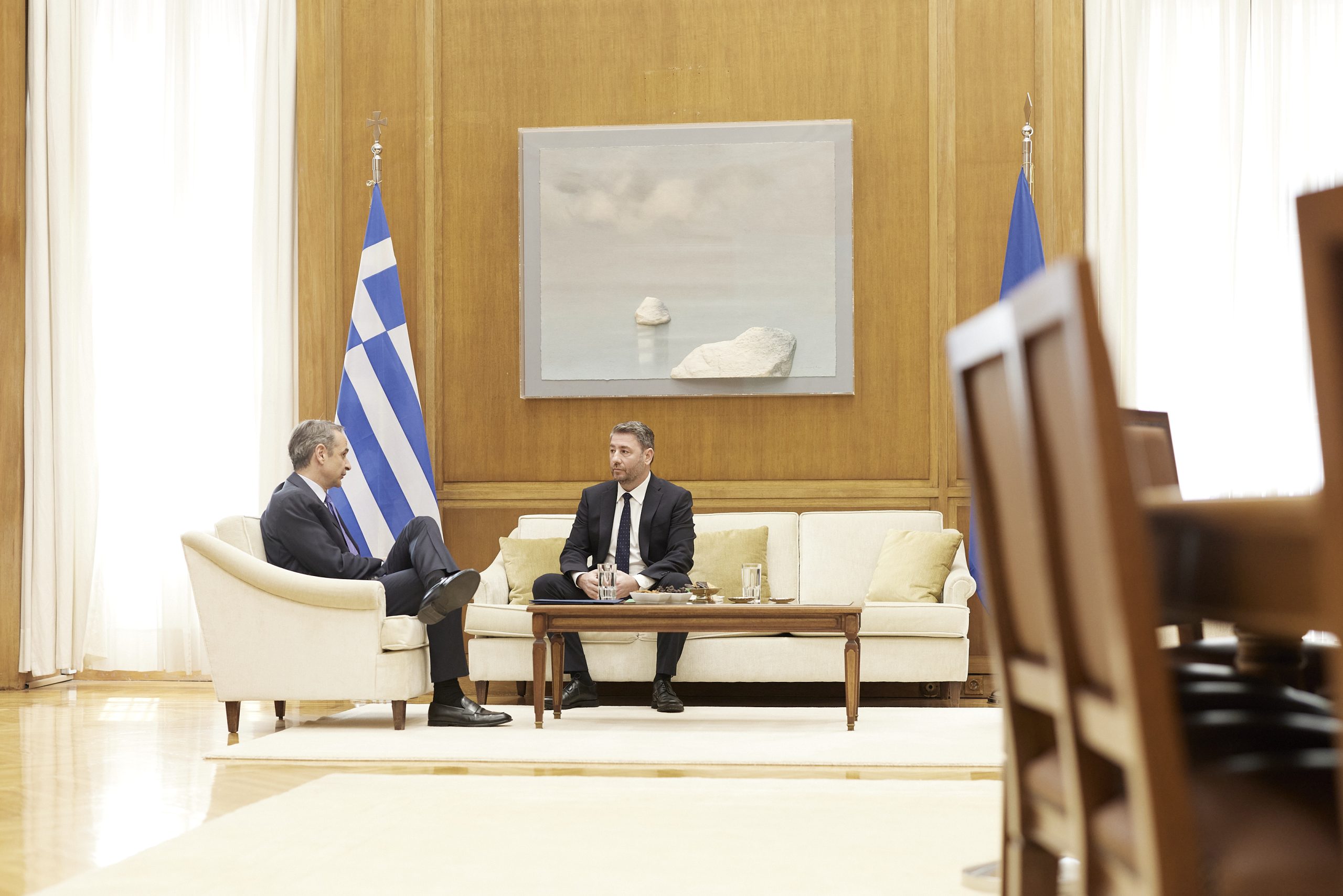 Συνάντηση με τον Νίκο Ανδρουλάκη προκειμένου να τον ενημερώσει για τα τεκταινόμενα στη Μέση Ανατολή και την ενεργοποίηση του κοινού αμυντικού δόγματος Ελλάδας-Κύπρου έχει αυτή την ώρα ο πρωθυπουργός, Κυριάκος Μητσοτάκης, ο οποίος έκανε δεκτό αίτημα του προέδρου του ΠΑΣΟΚ.