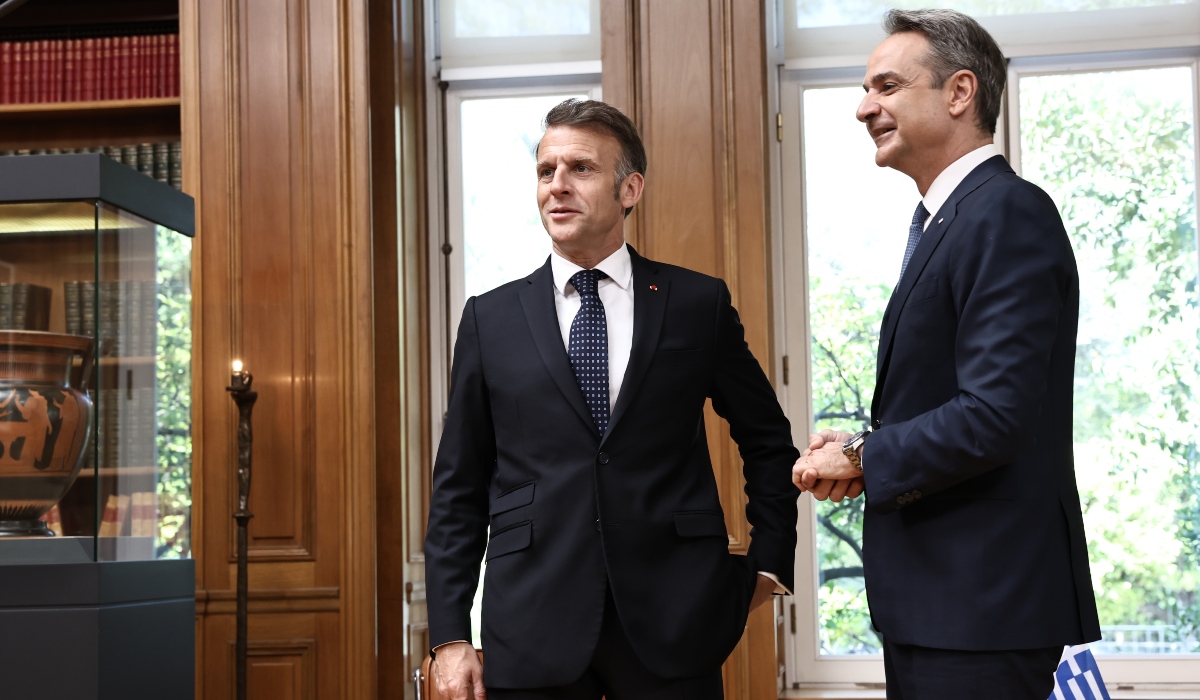 Στo ξεκίνημα της συνάντησής τους στο Μέγαρο Μαξίμου οι Κυριάκος Μητσοτάκης και Εμανουέλ Μακρόν είχαν τον ακόλουθο διάλογο: