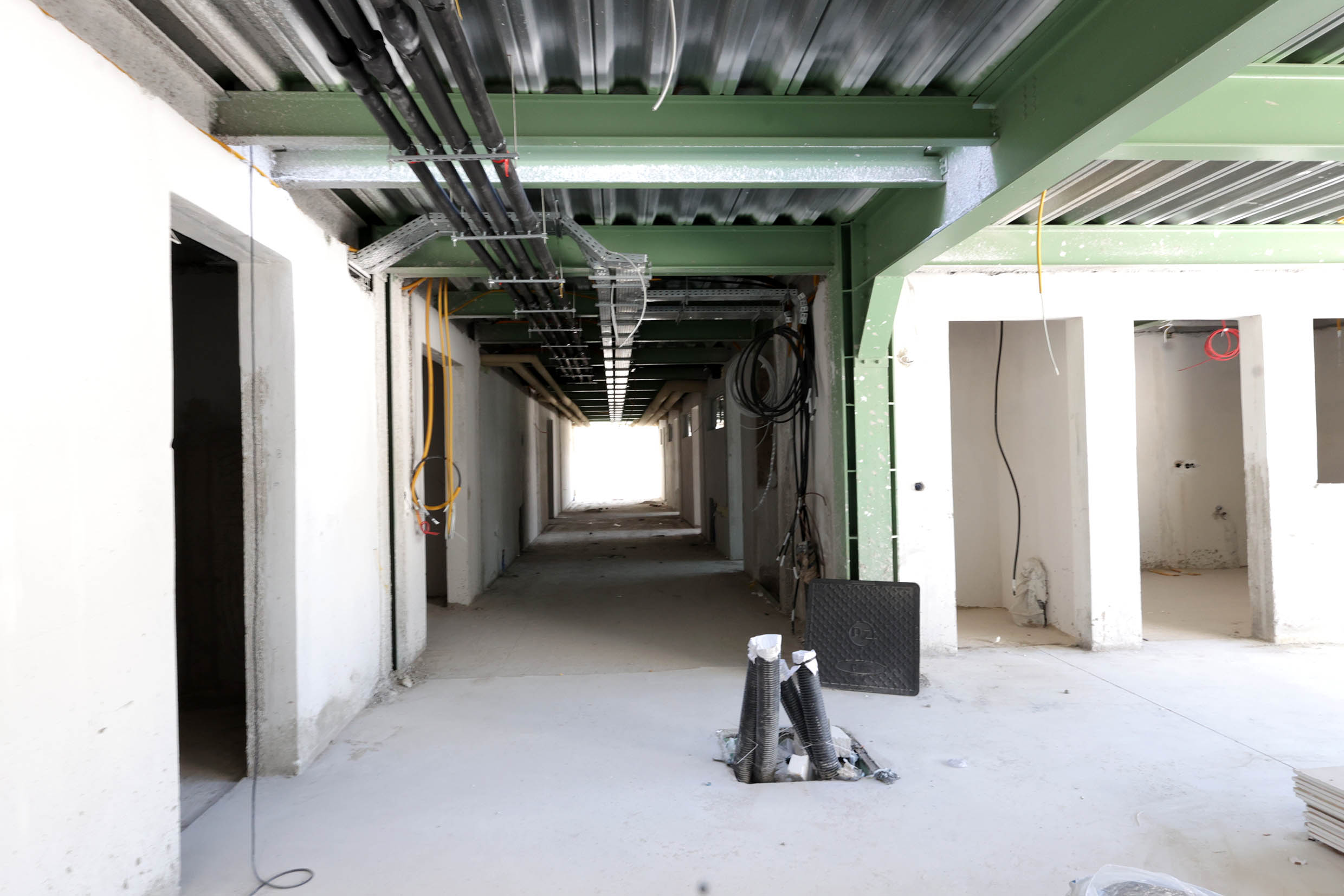 Οι εργασίες βρίσκονται σε προχωρημένο στάδιο και εκτιμάται ότι θα έχουν ολοκληρωθεί πριν το τέλος του τρέχοντος έτους. Αυτή την περίοδο εκτελούνται παρεμβάσεις τοποθέτησης κουφωμάτων αλουμινίου, επίστρωσης δαπέδων με πλακίδια, εξωτερικών χρωματισμών, κατασκευής ψευδοροφών από ορυκτές ίνες και γυψοσανίδες, υγρομόνωσης στο βατό δώμα και ολοκλήρωσης του εσωτερικού δικτύου πυρόσβεσης.