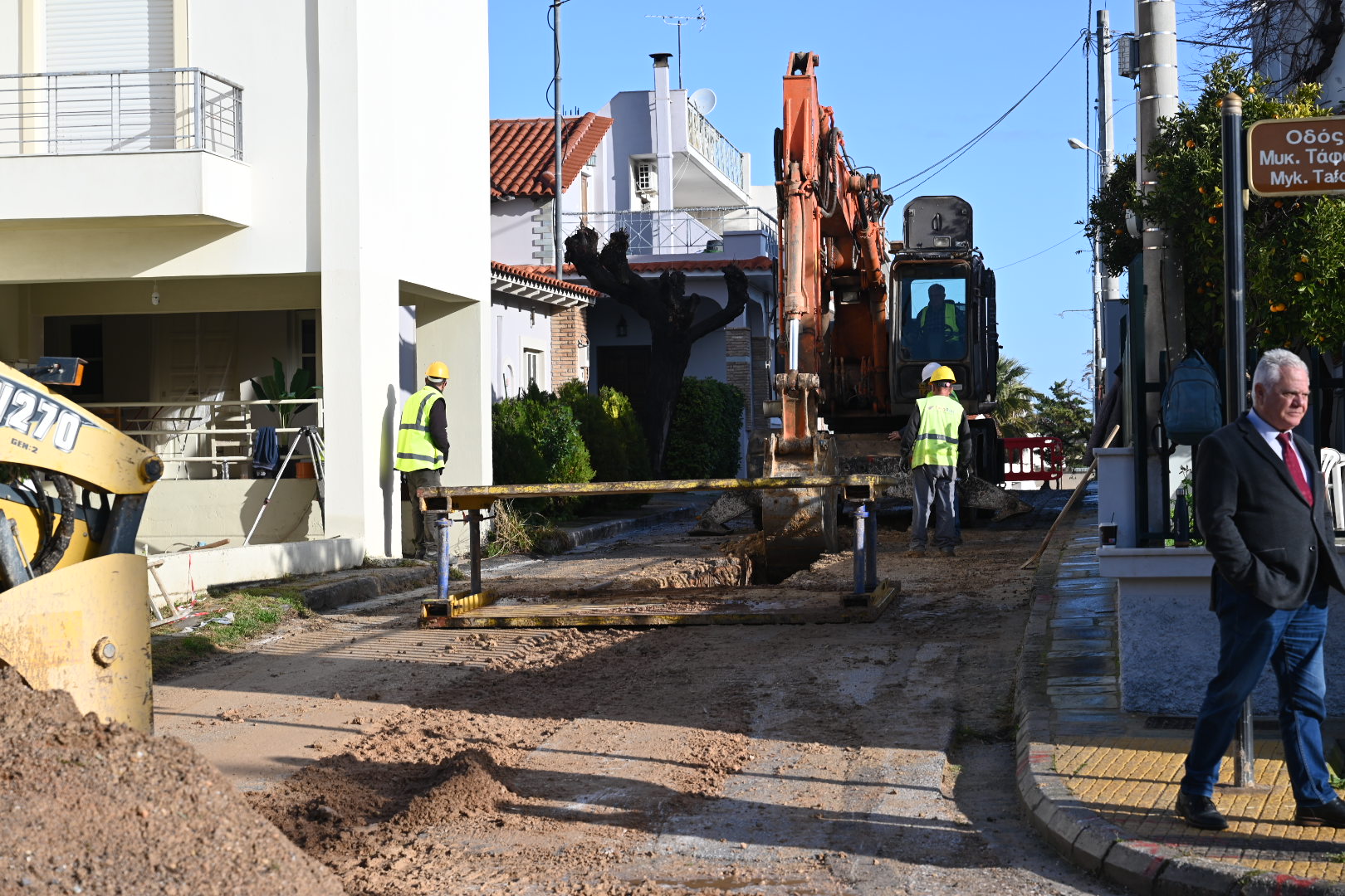 Μετά τη συνάντηση εργασίας, ο Περιφερειάρχης συνοδευόμενος από τον Δήμαρχο επισκέφθηκε τα παραπάνω σημεία, ενώ πραγματοποίησε αυτοψία σε σημεία που εκτελούνται, σε συνεργασία με την ΕΥΔΑΠ, εργασίες αντιπλημμυρικής προστασίας και κατασκευής δικτύου αποχέτευσης ομβρίων. Οι εν λόγω εργασίες πραγματοποιούνται στο πλαίσιο της κατασκευής του νέου δικτύου αποχέτευσης συνολικού μήκους 192 χλμ στα όρια του Δήμου – ένα εμβληματικό έργο, προϋπολογισμού 92 εκατ. ευρώ από πόρους του Ταμείου Συνοχής στο πλαίσιο του Προγράμματος «Περιβάλλον και Κλιματική Αλλαγή 2021 – 2027», με ευθύνη της Περιφέρειας Αττικής.