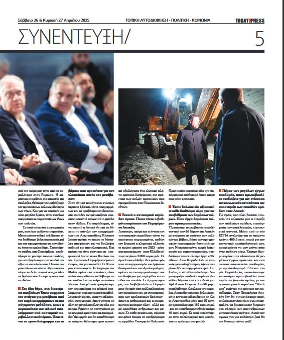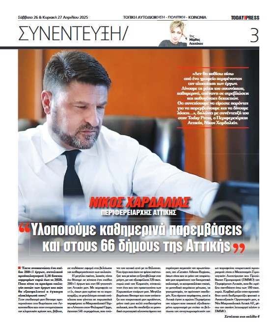 Ολόκληρη η συνέντευξη του Περιφερειάρχη Αττικής στην εφημερίδα Today Press είναι διαθέσιμη στον εξής σύνδεσμο: https://tinyurl.com/54a4mprr