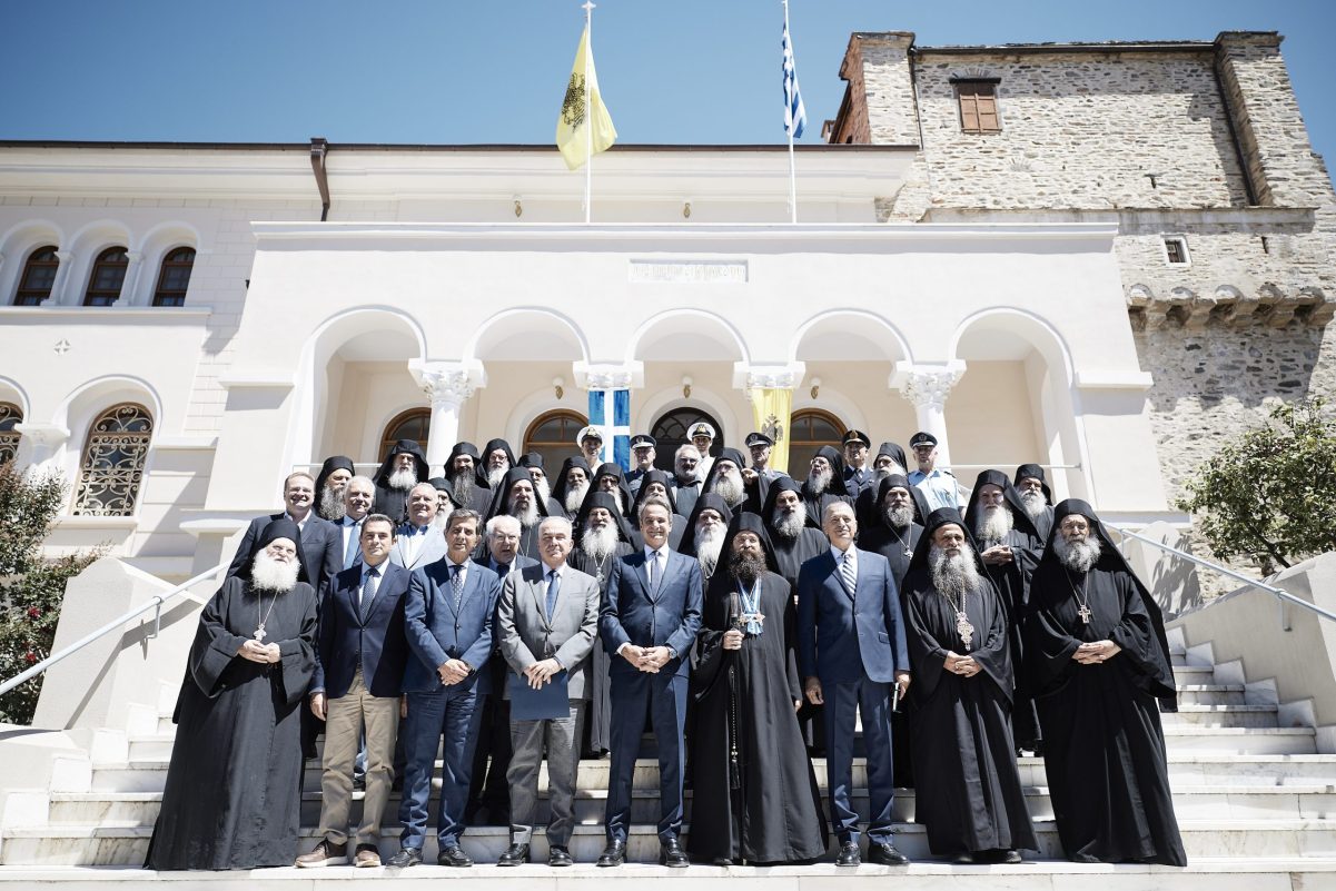 Ακολουθεί ολόκληρη η ομιλία του πρωθυπουργού Κυριάκου Μητσοτάκη κατά τη συνάντησή του με τους Καθηγούμενους και τους Αντιπροσώπους των Ιερών Μονών και την Ιερά Επιστασία του Αγίου Όρους, στις Καρυές.