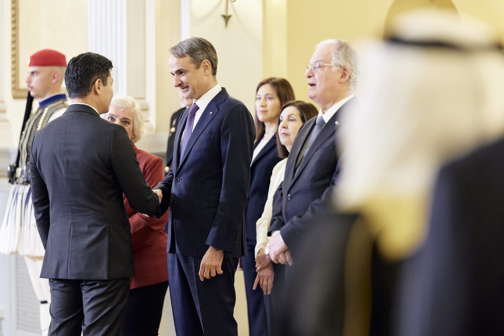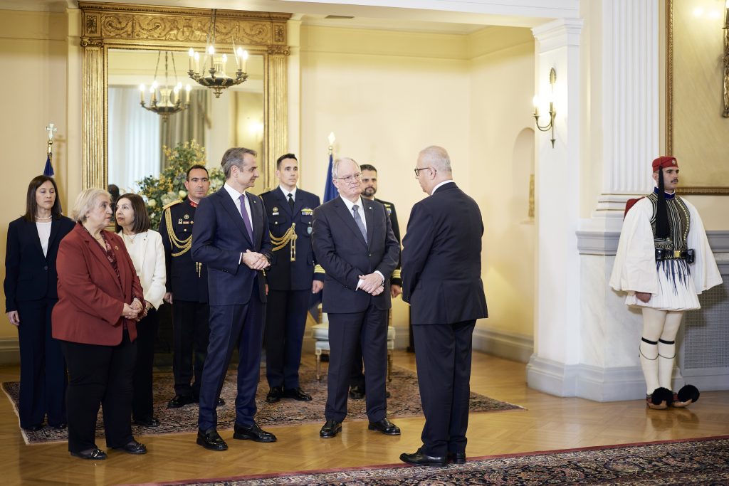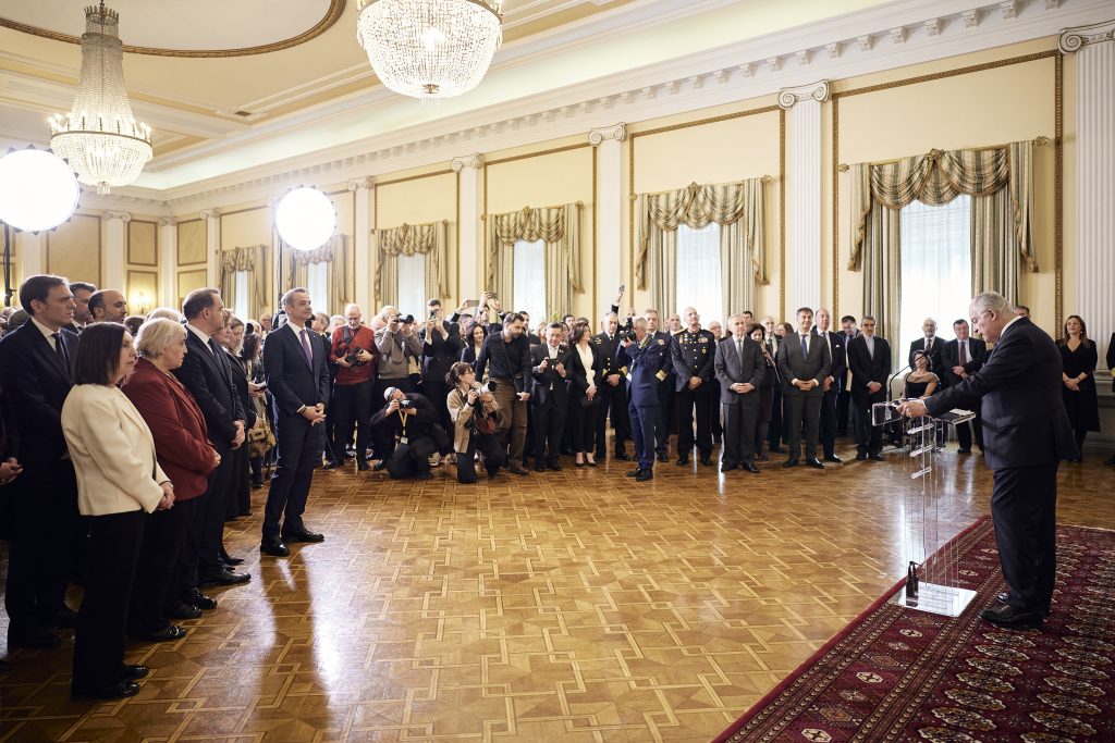 Παρόντες στο Προεδρικό Μέγαρο ήταν ο πρωθυπουργός Κυριάκος Μητσοτάκης και η υφυπουργός Εξωτερικών Αλεξάνδρα Παπαδοπούλου.