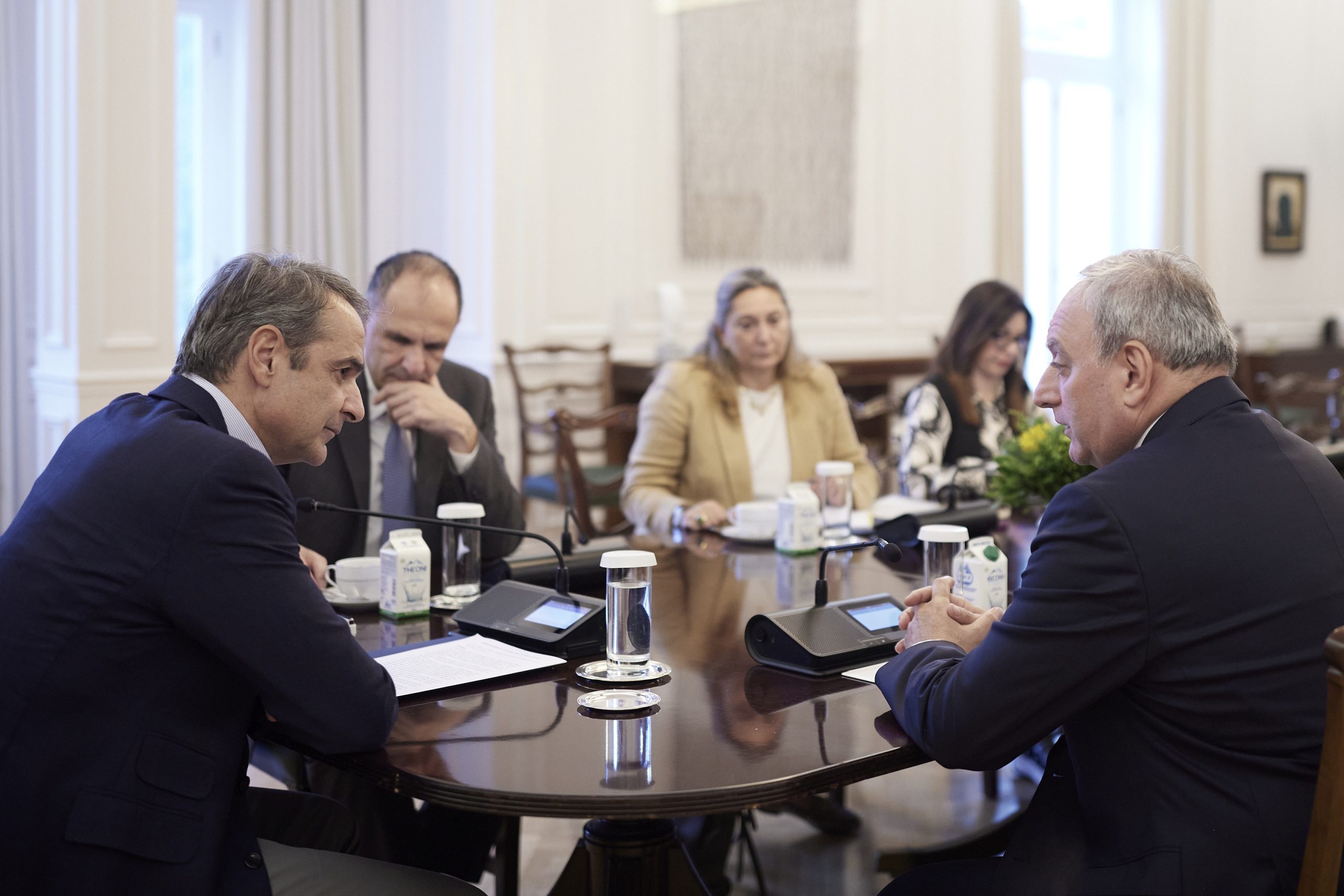 Ο πρωθυπουργός Κυριάκος Μητσοτάκης συναντήθηκε στο Μέγαρο Μαξίμου με τον γενικό γραμματέα του ΑΚΕΛ Στέφανο Στεφάνου.