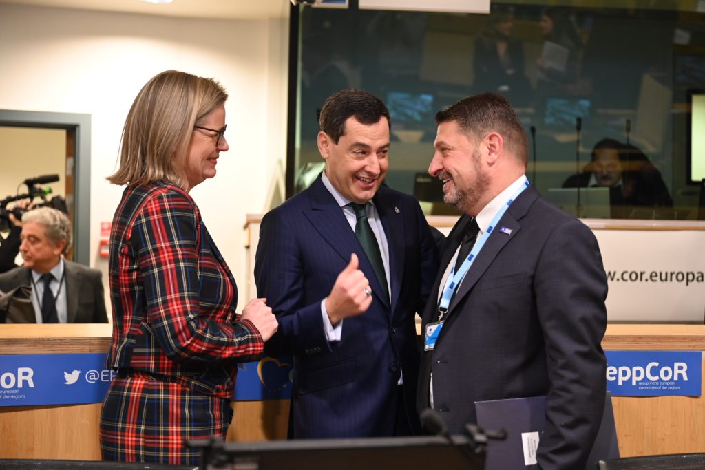 Στο περιθώριο της Ολομέλειας, ο κ. Χαρδαλιάς είχε την ευκαιρία να συναντηθεί και να συνομιλήσει για ζητήματα ευρωπαϊκής χρηματοδότησης, διαπεριφερειακής συνεργασίας και ενίσχυσης του ρόλου των Περιφερειών με Ευρωπαίους θεσμικούς εταίρους, μεταξύ των οποίων η Πρόεδρος της Ευρωπαϊκής Επιτροπής των Περιφερειών Kata Tutto, ο Περιφερειάρχης Γαλικίας Alfonso Rueda Valenzuela, ο Περιφερειάρχης Ανδαλουσίας και Αντιπρόεδρος της Ευρωπαϊκής Επιτροπής των Περιφερειών Juan Manuel Moreno Bonilla, καθώς ο Έλληνας Επίτροπος Βιώσιμων Μεταφορών και Τουρισμού κ. Απόστολο Τζιτζικώστα.