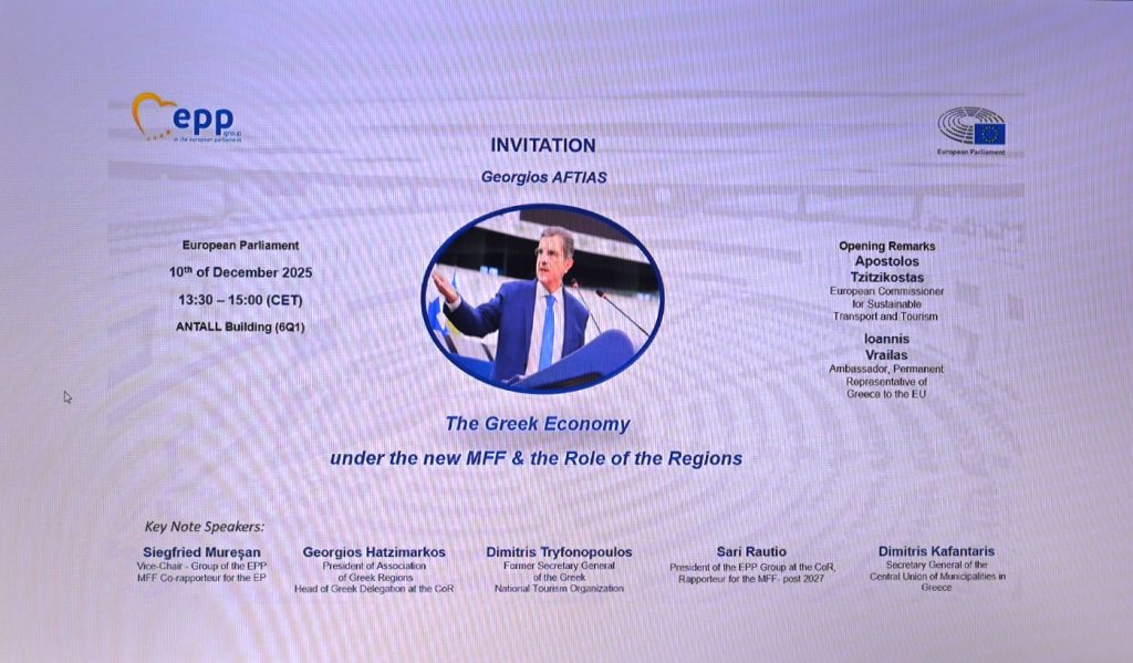 Ο Περιφερειάρχης συμμετείχε, επίσης, στην ειδική εκδήλωση για την Ελληνική Οικονομία, που διοργάνωσε ο Ευρωβουλευτής της Νέας Δημοκρατίας, Γιώργος Αυτιάς, αναδεικνύοντας την κρίσιμη σημασία της προσεχούς πενταετίας σε σχέση με τις ευρωπαϊκές χρηματοδοτήσεις προς την Ελλάδα. Η εκδήλωση πραγματοποιήθηκε παρουσία του Έλληνα Επιτρόπου Απόστολου Τζιτζικώστα, του Αντιπροέδρου του ΕΛΚ Sigfried Muresan, της Προέδρου του ΕΛΚ για την Επιτροπή των Περιφερειών Sari Rautio, του Προέδρου των Περιφερειών Γιώργου Χατζημάρκου και πλήθους ειδικών στον τομέα της οικονομίας, ενώ παρευρέθηκαν επίσης οι Ευρωβουλευτές Β. Μεϊμαράκης, Μ. Κεφαλογιάννης, Φ. Μπελέρης, Σ. Αρναούτογλου και Λ. Φουρλάς, ο Περιφερειάρχης Πελοποννήσου Δ. Πτωχός, ο Αντιπεριφερειάρχης Καβάλας Θ. Μαρκόπουλος, οι Δήμαρχοι Γλυφάδας Γ. Παπανικολάου, Κυθήρων Ε. Χαρχαλάκης, Αλίμου Α. Κονδύλης, Πυλαίας – Χορτιάτη Ι. Καϊτεζίδης, καθώς και οι πρώην δήμαρχοι Κ. Μπακογιάννης, Δ. Μαραβέλιας και Α. Μαυρίδης.