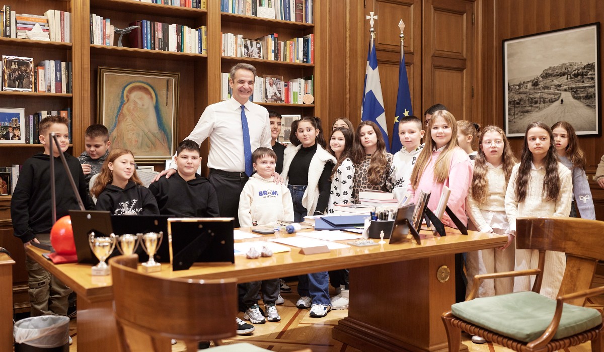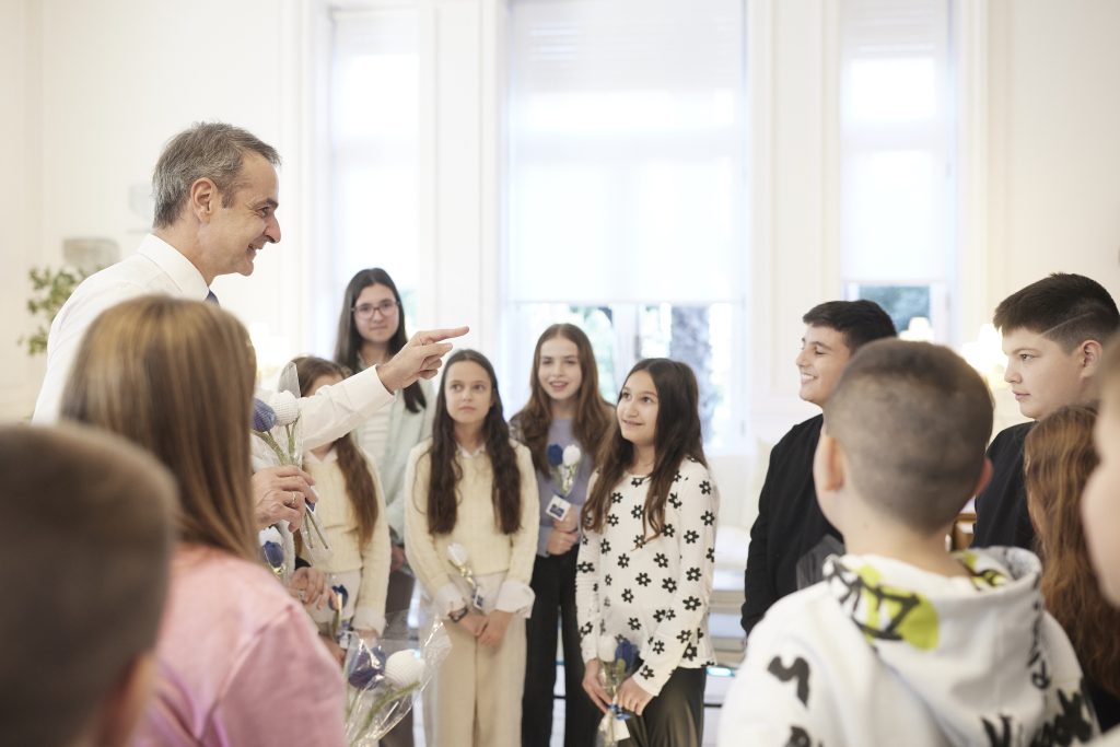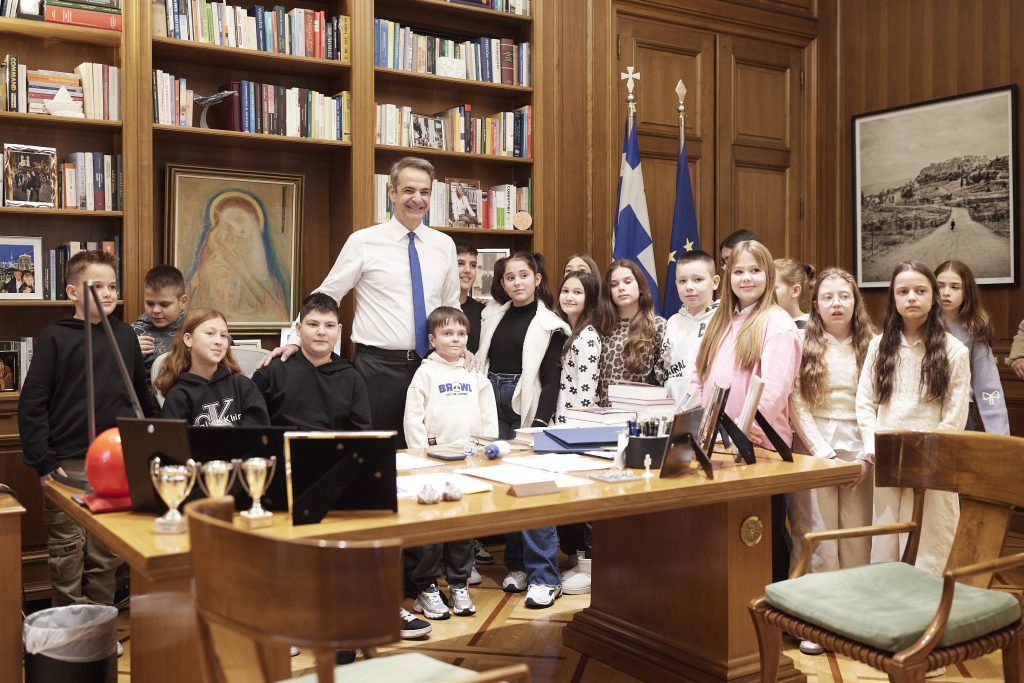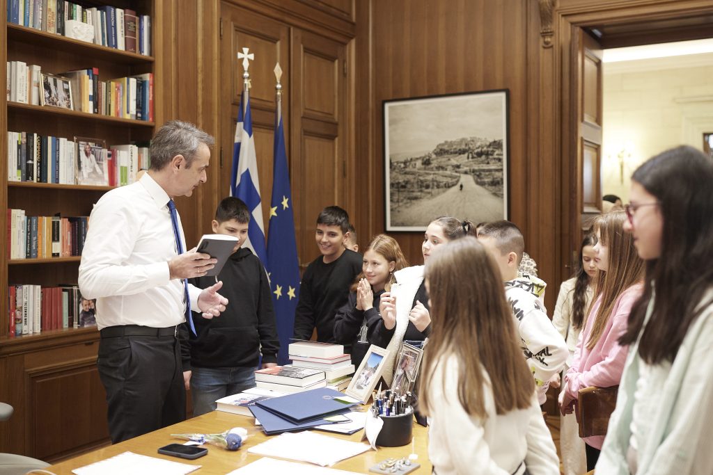 Ο Πρωθυπουργός Κυριάκος Μητσοτάκης υποδέχτηκε στο Μέγαρο Μαξίμου τις μαθήτριες και τους μαθητές των Ε’ και ΣΤ’ τάξεων του μειονοτικού Δημοτικού Σχολείου Πάχνης Ξάνθης, που συνοδεύονταν από τους δασκάλους και τους γονείς τους.