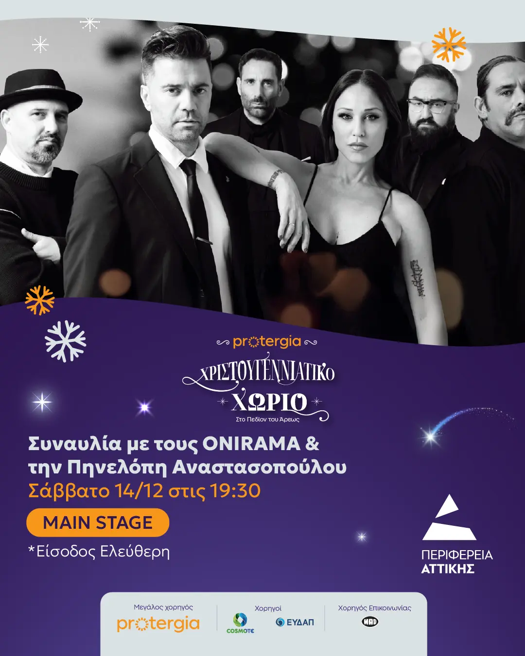 Μια Rock ‘n Roll… έκρηξη στη σκηνή υπόσχονται οι ONIRAMA, που θα βρεθούν το Σάββατο 14 Δεκεμβρίου στις 19:30 στο Χριστουγεννιάτικο Χωριό για μια βραδιά γεμάτη ενέργεια και πάθος. Με τις δεκάδες διαχρονικές επιτυχίες τους και με ανανεωμένη διάθεση, επιστρέφουν στις ροκ ρίζες τους, ετοιμάζοντας ένα εκρηκτικό show που θα βάλει «φωτιά» στη σκηνή.