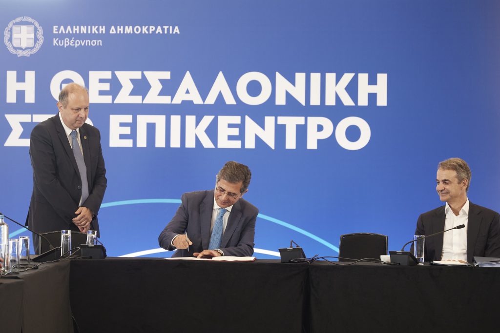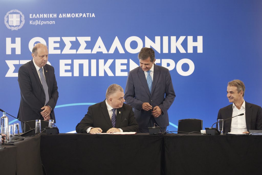 Στην τελετή υπογραφής του μνημονίου συνεργασίας για τη λειτουργία Έδρας Σπουδών «Μέγας Αλέξανδρος» στο Αριστοτέλειο Πανεπιστήμιο Θεσσαλονίκης παρέστη ο πρωθυπουργός Κυριάκος Μητσοτάκης.