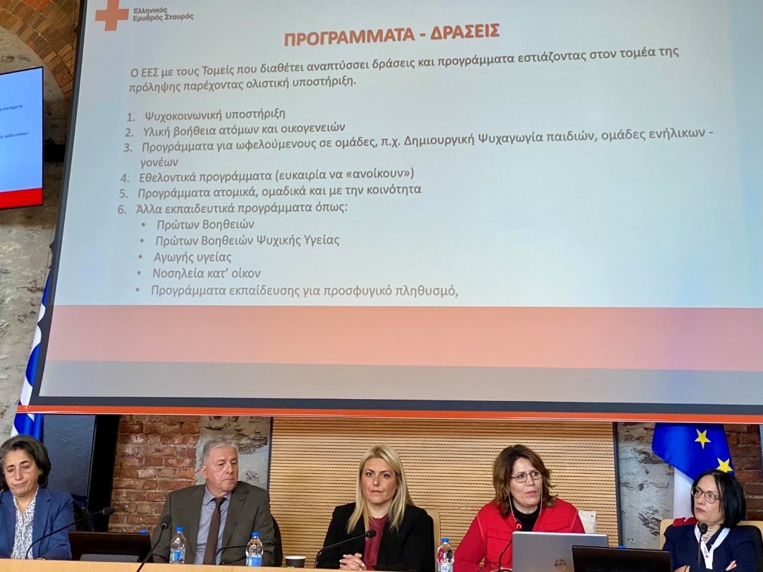 Στις δράσεις και στα προγράμματα του Ελληνικού Ερυθρού Σταυρού, που εστιάζουν στην πρόληψη και παρέχουν ολιστική υποστήριξη, αναφέρθηκαν η Δέσποινα Φιλιππιδάκη και η Αικατερίνη Κουκούτση, διευθύντρια και κοινωνική λειτουργός αντίστοιχα του Περιφερειακού Τμήματος ΕΕΣ Θεσσαλονίκης. «Σε καταστάσεις κρίσης οι προστατευτικοί μηχανισμοί πλήττονται και οι κίνδυνοι αυξάνονται», υπογράμμισε η κυρία Φιλιππιδάκη, προσθέτοντας ότι στις πιο ευάλωτες ομάδες του πληθυσμού ανήκουν μεταξύ άλλων οι γυναίκες, τα παιδιά, οι ηλικιωμένοι, οι άνθρωποι με σωματική ή διανοητική αναπηρία κ.ά. «Η κακοποίηση δεν έχει πρόσημο ούτε κοινωνικό επίπεδο, αλλά μπορεί να συμβεί σε οποιαδήποτε γυναίκα, ανεξαρτήτως μορφωτικού επιπέδου, οικονομικής επιφάνειας και κοινωνικής τάξης», είπε από την πλευρά της η κυρία Κουκούτση.