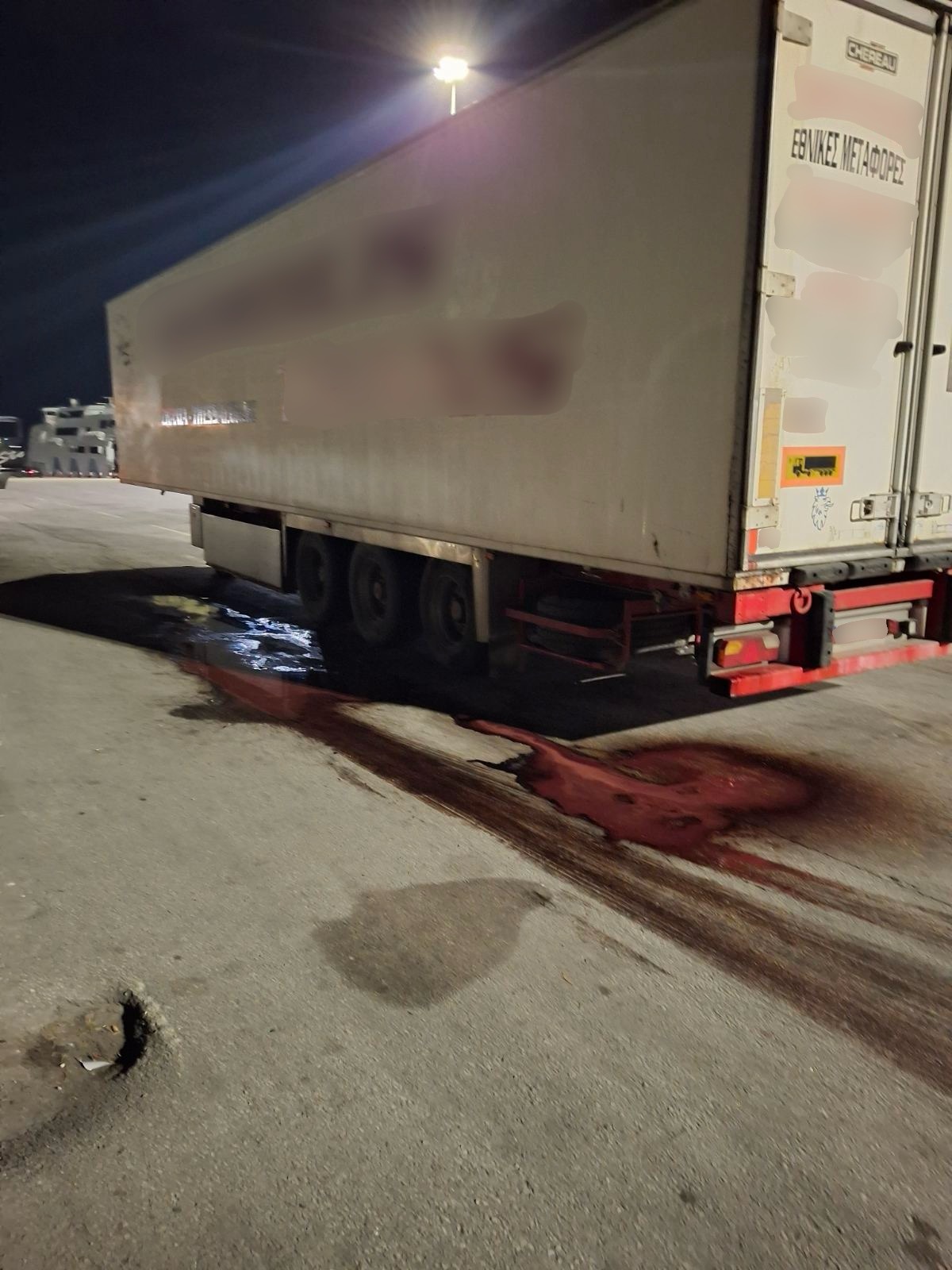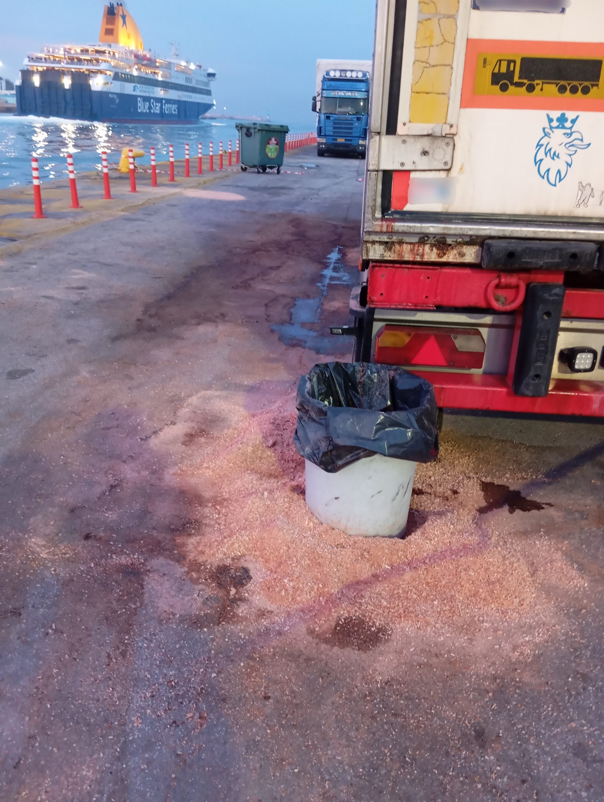 Οι κτηνίατροι της Περιφέρειας, που μετέβησαν άμεσα για αυτοψία, διαπίστωσαν την ύπαρξη φορτίου με 20.370 κιλά ζωικών υποπροϊόντων (13.784 κιλά χοιρινά υπολείμματα και 6.559 κιλά δέρματα χοίρων), ενώ από το εσωτερικό του οχήματος εξερχόταν αιματηρό υγρό, προκαλώντας έντονη δυσοσμία και μόλυνση του περιβάλλοντος χώρου.