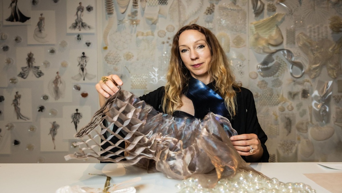 Δημιουργίες της σχεδιάστριας μόδας Iris van Herpen αναδεικνύονται στην έκθεση «Sculpting the Senses» στο Μουσείο Kunsthal στο Ρότερνταμ και παράλληλα εξερευνάται η δυναμική μεταξύ του σώματος, των ρούχων και του περιβάλλοντός τους.