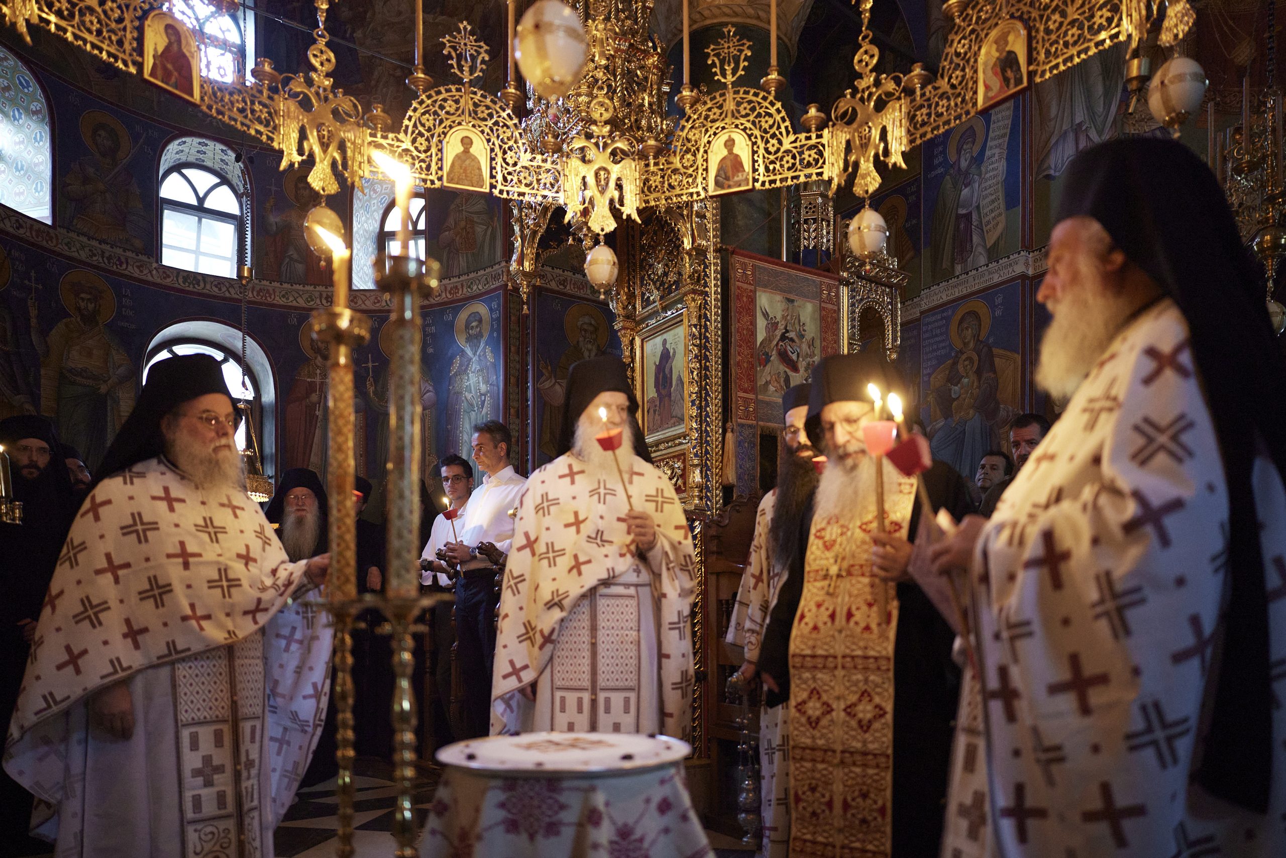 Ο Πρωθυπουργός Κυριάκος Μητσοτάκης, συνοδευόμενος από τον γιο του Κωνσταντίνο, παρακολούθησε τα ξημερώματα τη θεία λειτουργία στην Ιερά Μονή Σίμωνος Πέτρας, όπου και διανυκτέρευσε.